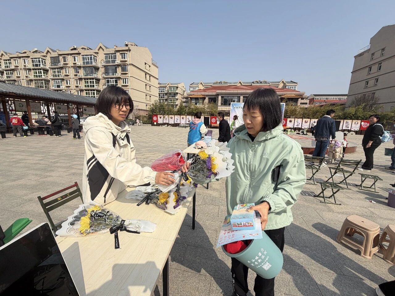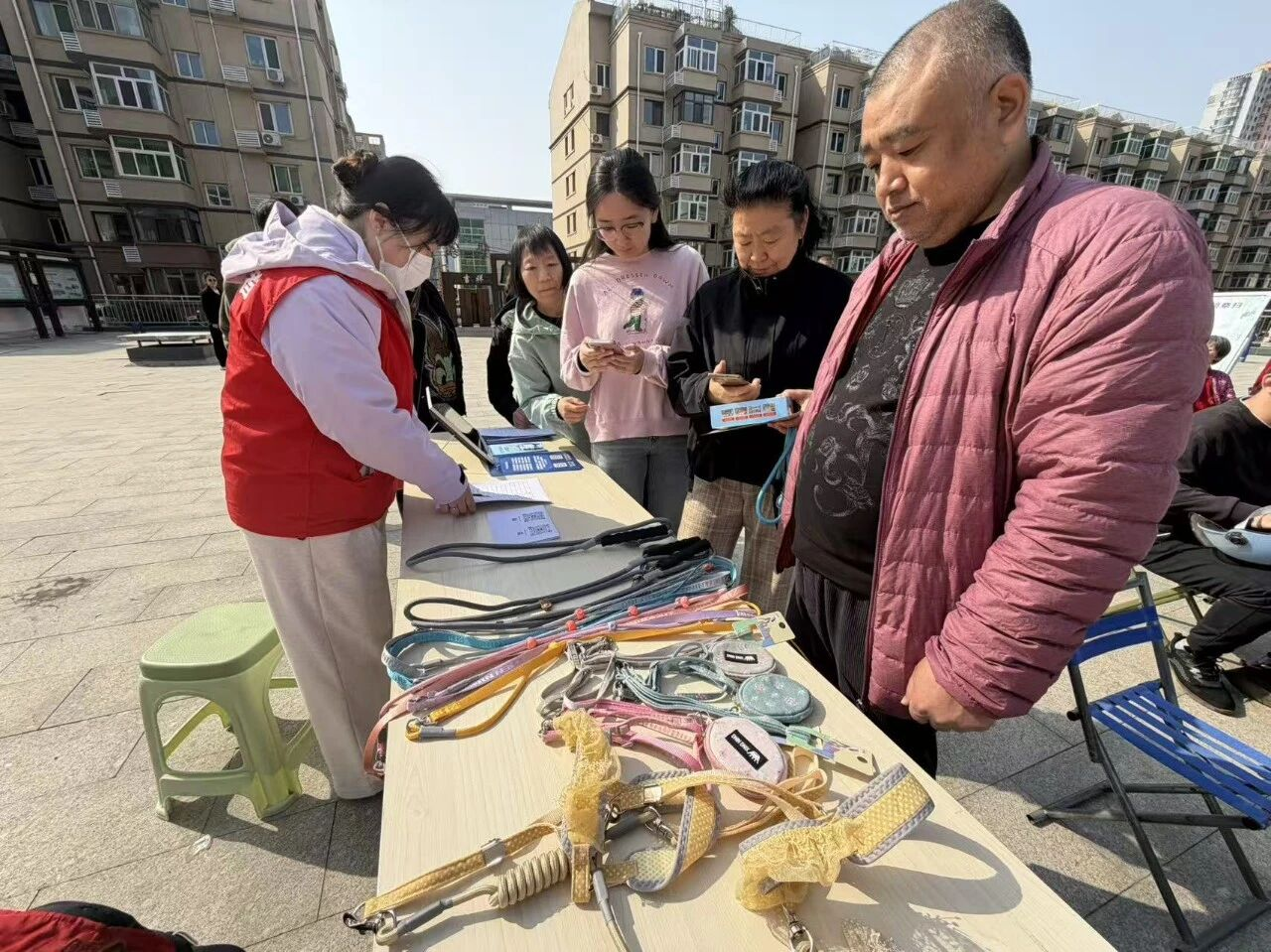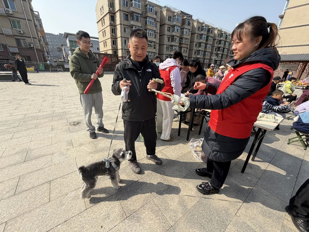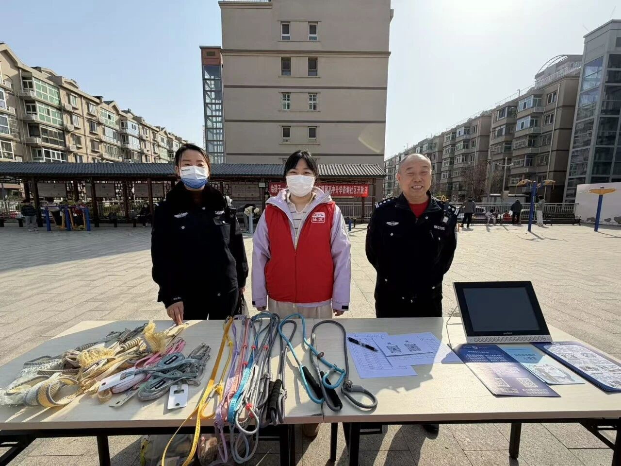 文明养犬与反诈宣传区人气最为旺盛。养犬居民携犬有序排队,主动完成养犬信息登记、加入社区养犬管理群,领取专属犬绳;反诈宣传台前,居民们认真观看警示视频、仔细阅读宣传资料,主动咨询防骗知识,切实筑牢了财产安全防线。