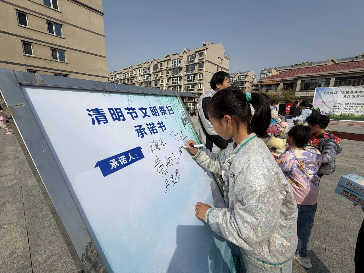 活动在精彩的“文明红绿灯”主题演出中拉开帷幕,现场设置四大文明宣传板块,内容丰富、形式多样,吸引了居民纷纷驻足、有序参与。在文明祭扫专区,大家围聚在PAD屏幕前,认真观看线上祭扫流程,领取免费祭扫鲜花,并郑重签署《文明祭扫承诺书》,以绿色低碳的方式寄托对先人的哀思。