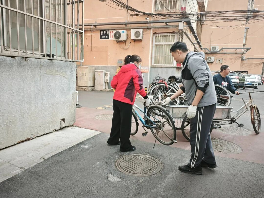 工作人员重点清理楼道杂物、废弃家具,规范非机动车停放,并对公共区域、道路、绿化带及卫生死角进行全面清理,对问题现场登记、立即整改,消除安全隐患,提升社区面貌。