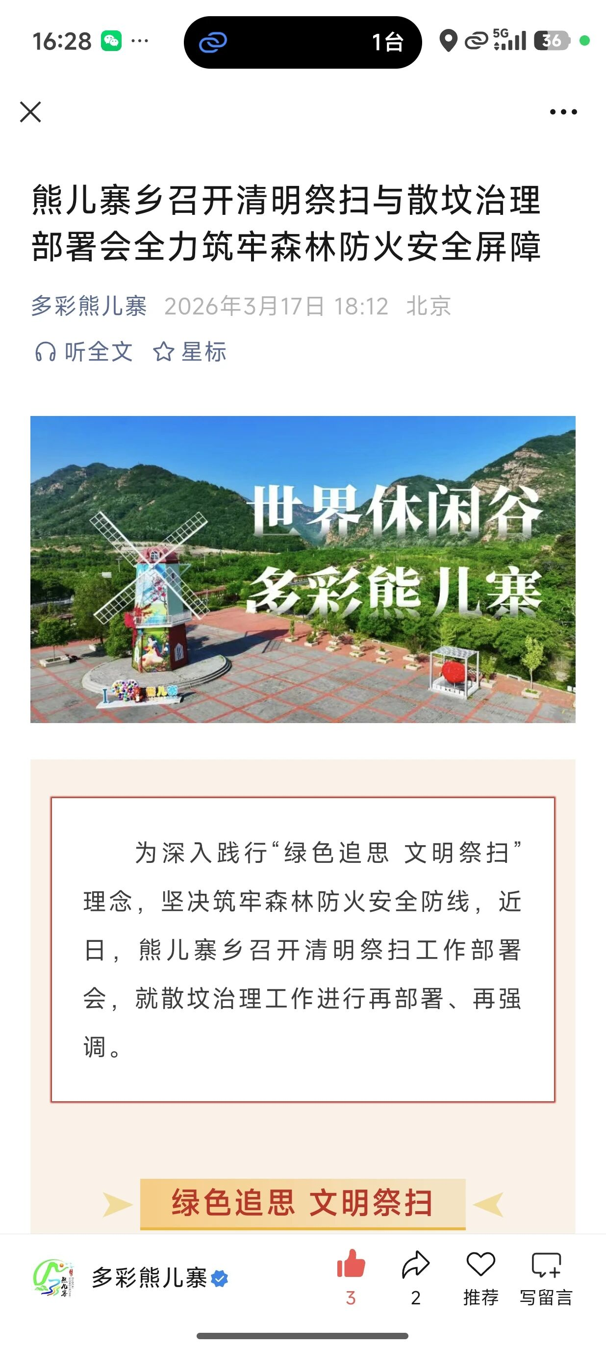 清明节将至,民俗祭祀、春耕生产、踏青出游等活动叠加,森林防火进入关键期。为切实守护绿水青山和群众生命财产安全,熊儿寨乡迅速行动,通过强化组织领导统一思想、深入督查检查增强意识、坚持全员在岗守卫家园、加强宣传引导全方覆盖等举措,全面筑牢森林防灭火安全屏障。
