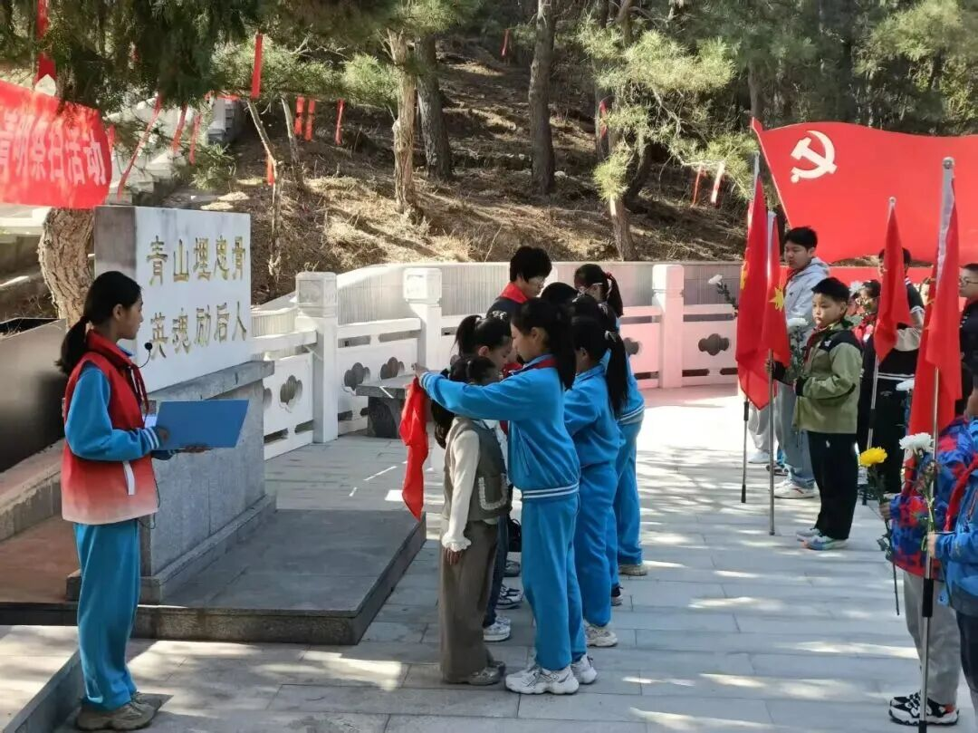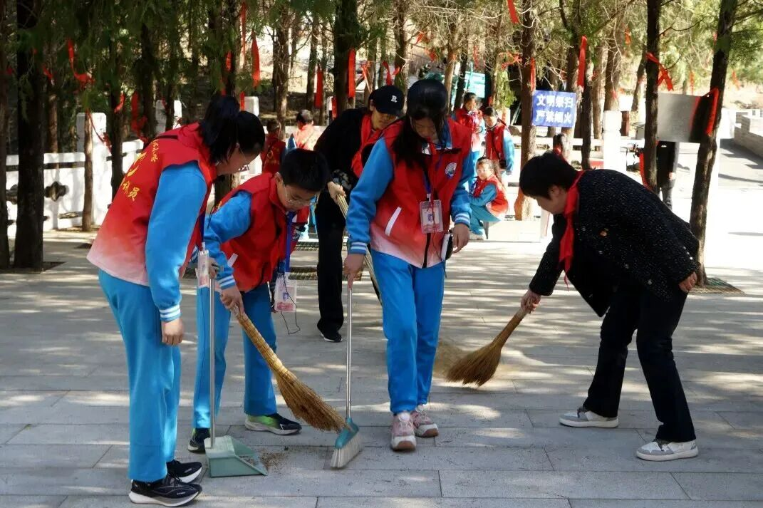 抵达基地后,师生与家长共同清扫陵园、瞻仰纪念碑,以实际行动寄托深切哀思。