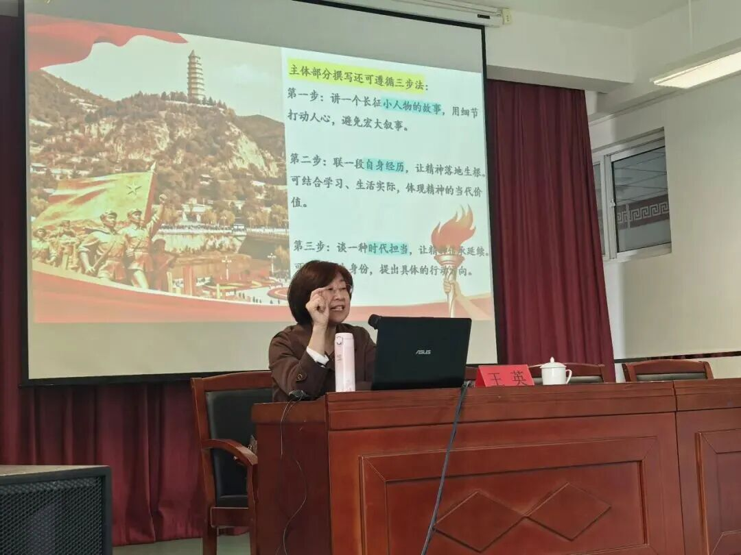 清明祭扫活动告一段落,红色教育的脚步并未停歇。4 月 3 日,学校特邀平谷区教育关工委王英老师到校,开展 “弘扬长征精神,争做时代新人” 主题教育读书辅导。王老师围绕活动要点、长征精神内涵、稿件撰写与朗诵技巧进行细致指导,帮助同学们提升表达能力、感悟红色力量,让长征精神入脑入心。