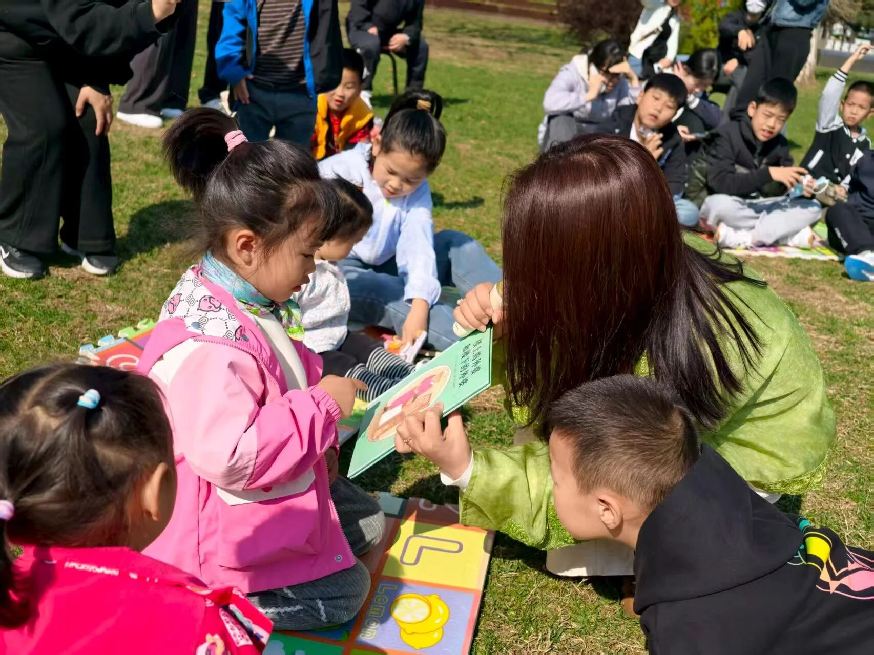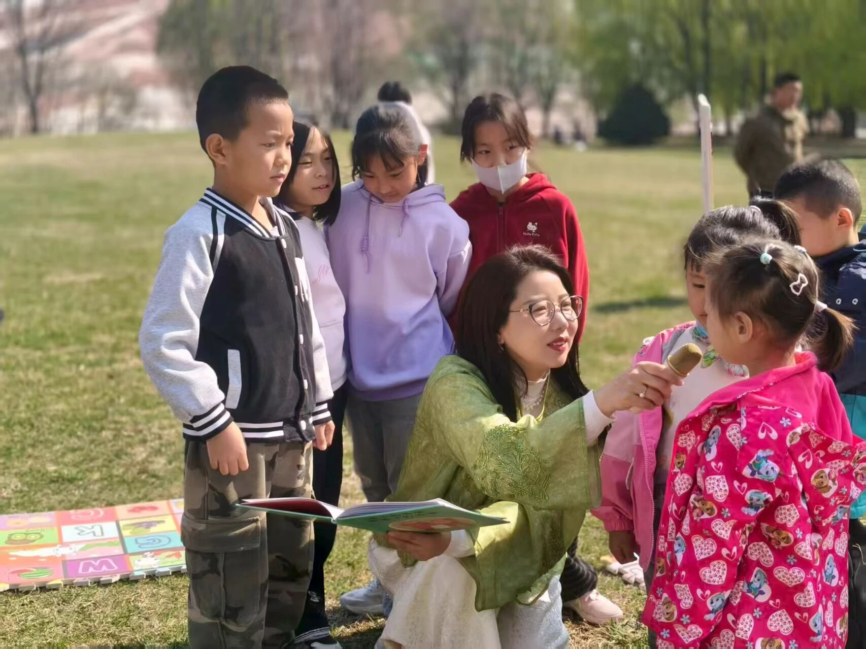 活动以绘本阅读温情启幕。在老师的带领下,孩子们共同品读《楼上的外婆和楼下的外婆》,在生动真挚的讲述中感受祖孙情深、陪伴珍贵。家长与孩子并肩而坐,沐浴暖阳、静心聆听,轻声交流、共读绘本,在潜移默化中懂得感恩与珍惜,让浓浓书香与融融温情洒满景区。