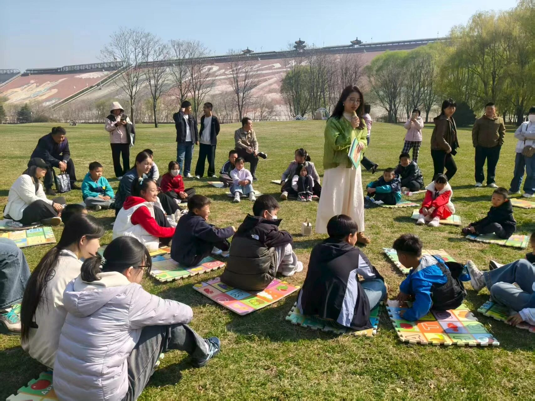 春和景明,万物复苏,为弘扬中华优秀传统文化,丰富群众精神文化生活,清明节期间,金海湖镇文化服务中心联合金海湖景区,组织辖区村民及游客共30个亲子家庭走进景区,开展“书香寄清明 纸鸢绘亲情”主题文化活动,让孩子们在春日美景中品读经典、传承民俗,领略传统节日的深厚魅力。
