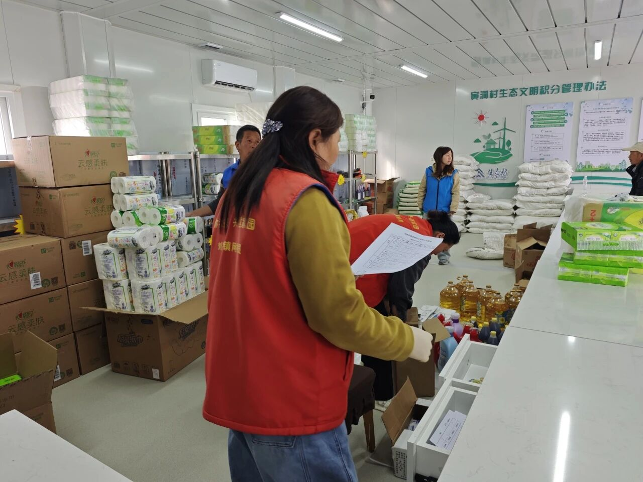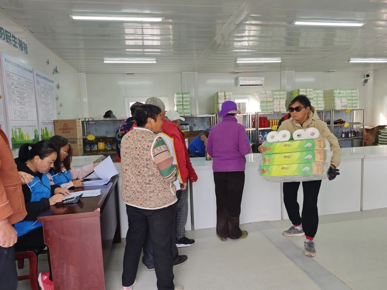 兑换活动现场暖意融融、秩序井然,村民们手持积分兑换表,有序排队核对积分、挑选物资,脸上洋溢着收获的喜悦。不少村民表示,积分制让大家参与乡村治理的劲头更足了,主动践行文明新风、参与公益服务已成为全村共识。本次兑换活动共计300余户村民参与,兑换物资总价值超八万元。