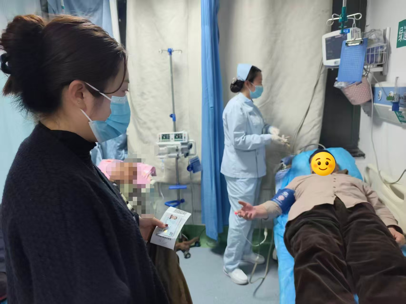 在医院里,从挂号分诊、陪同问诊检查,再到因家属未赶到先行垫付医药费用,闫霞全程寸步不离,悉心照料。经医生详细诊断,杨大爷的剧痛系因未按时服用降压药导致血压骤然升高所致,需留院观察治疗。直到家属匆匆赶到医院,看到老人情况稳定,闫霞才终于放下悬着的心,与家属完成交接后悄然离开。