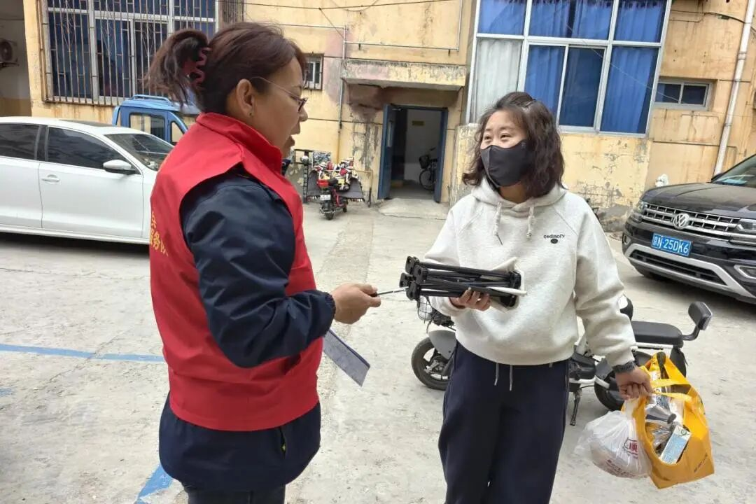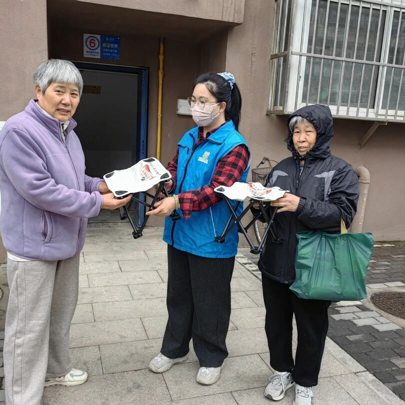 本次活动面向社区全体居民开展,采用“定点发放+上门配送”相结合的方式,实现便民服务无死角、全覆盖。在社区集中发放点,工作人员及志愿者为居民免费发放轻量化折叠板凳,并现场演示收纳、使用方法,讲解日常维护与安全注意事项;针对行动不便、高龄独居的老年居民,社区工作人员主动上门配送,确保每一位有需求的居民都能领到实用的便民物资。发放过程中,工作人员同步开展创城政策宣讲,围绕文明出行、垃圾分类、邻里互助等内容,向居民普及文明城区创建知识,引导大家主动参与到文明城区共建共治共享中来。
