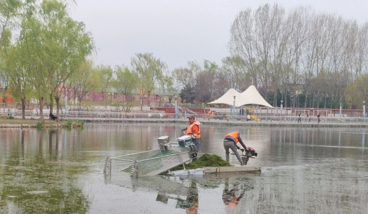 近期气温持续升高,小龙河河道内菹草进入快速生长期,局部水域长势茂盛,易腐烂污染水体,影响河道水生态平衡与景观效果 。为保障河道水质稳定,4月9日,马坊镇组织工作人员启动菹草集中打捞清理工作。