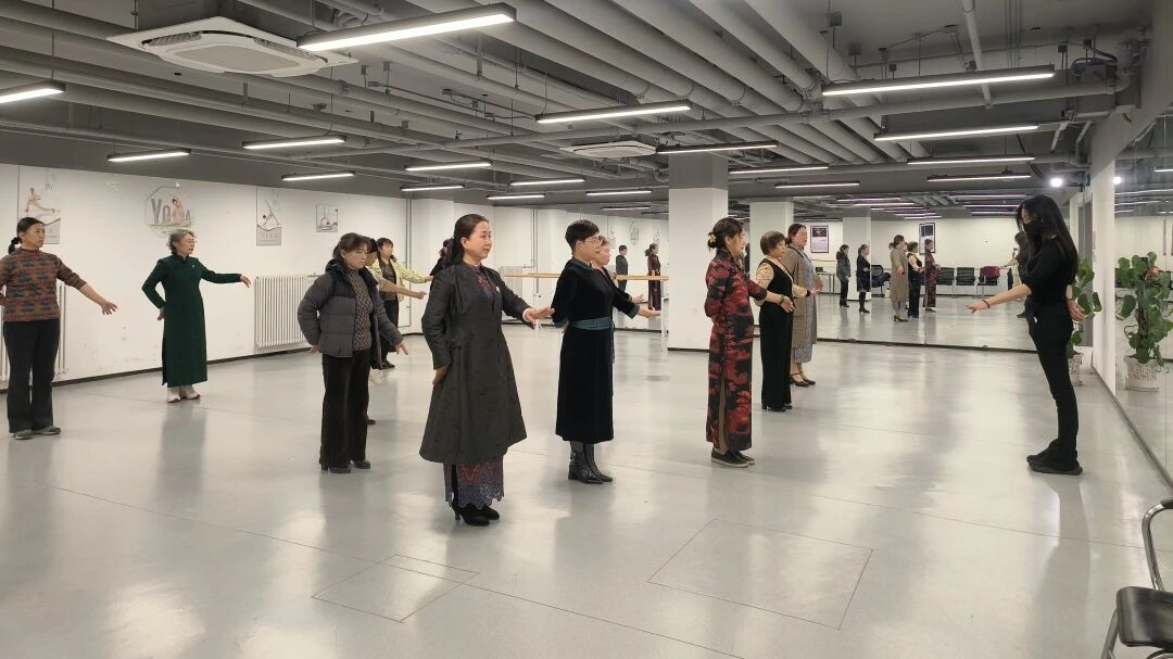 授课过程中,专业老师耐心细致、循序渐进,从基础形体矫正入手,对学员们的站姿、走姿进行逐一引导。针对中老年朋友的身体特点,老师重点讲解了行走时的步伐控制、重心调整、腰背挺拔以及肢体协调等要点,手把手纠正不规范姿势,鼓励大家抬头挺胸、舒展身姿,展现自信大方的精神面貌。在旗袍展示教学环节,老师更是精益求精,对动作细节进行精细化指导。从手势摆放、转身弧度,到眼神神态、步伐节奏,再到整体气韵的拿捏,每一个细节都耐心示范、认真讲解,帮助大家感受旗袍所承载的温婉韵味与典雅气质。