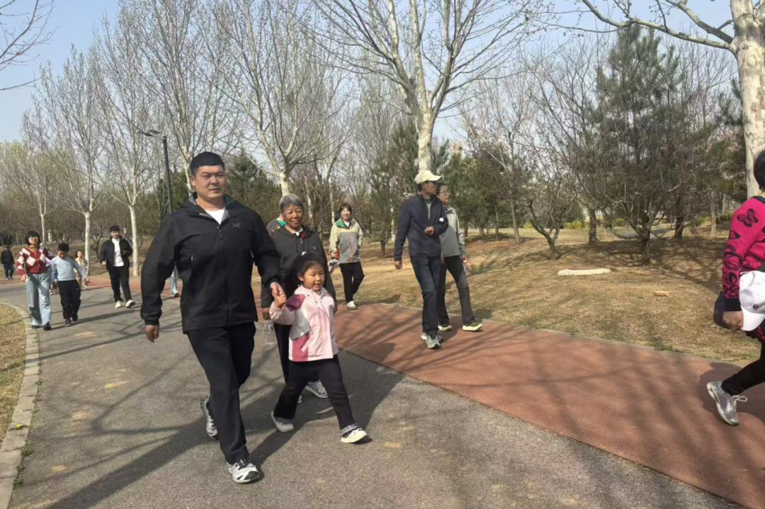 活动现场,社区居民结伴而行,沿着规划路线轻松健步,大家边走边聊、舒展身心,在春日美景中舒缓压力、强健体魄,感受户外养生的乐趣。