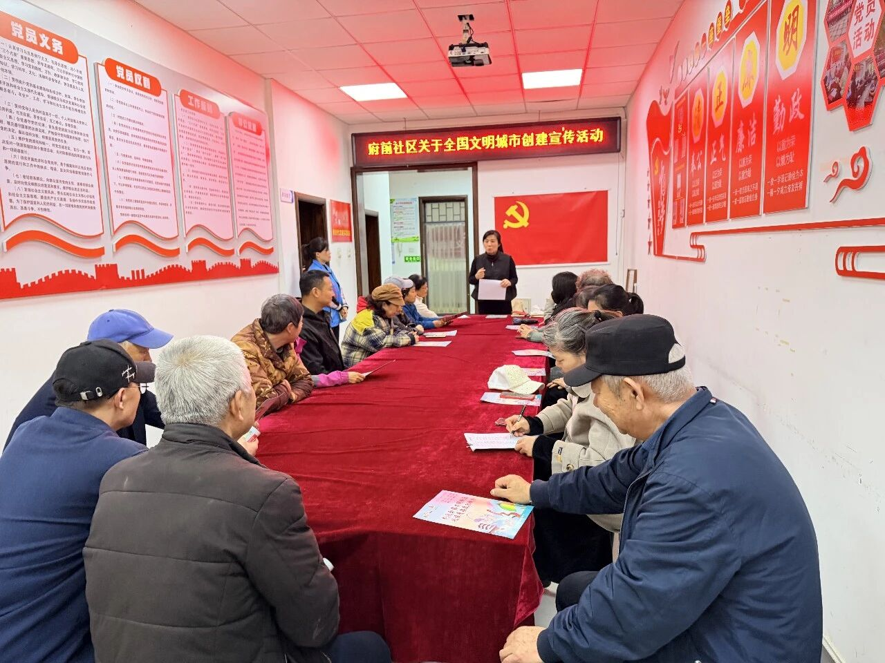 为深入推进全国文明城区创建工作,营造人人参与、共建共享的浓厚氛围,近日,府前社区开展文明城区创建主题宣传活动。社区书记崔彩军高度重视,带头开展宣讲,聚焦居民日常生活关键细节,细致解读文明规范,切实让文明理念入脑入心。
