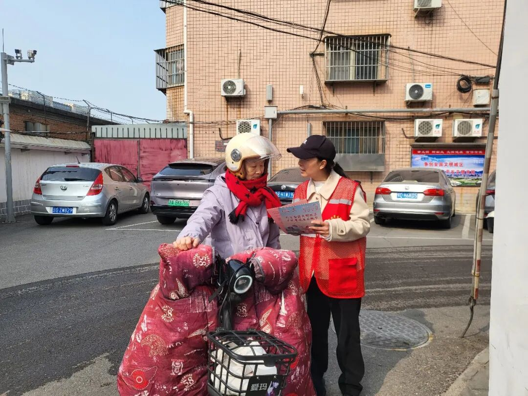 活动现场,崔书记紧扣创城工作重点,用通俗易懂、贴近生活的语言向居民宣讲。在交通安全方面,重点普及“一盔一带,安全常在”防护知识,提醒居民自觉摒弃交通陋习、遵守交通法规,共同守护出行安全。在人居环境整治方面,着重强调楼道公共空间管理规范,倡议居民及时清理楼道堆放物,杜绝占用消防通道等行为,共同维护楼栋整洁有序,筑牢社区消防安全防线。