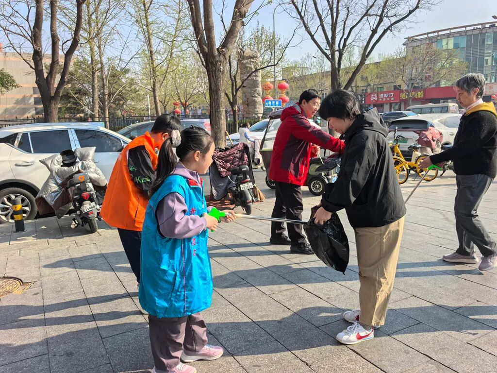 20余名志愿者参与其中,在街头主次干道、国泰商超、世纪广场等人流密集区域,捡拾烟头、纸屑等杂物,同时劝导并整理占用盲道的电动自行车,保障视障人士出行安全。家长们以身作则,向孩子们传递文明理念,培育其社会责任感。