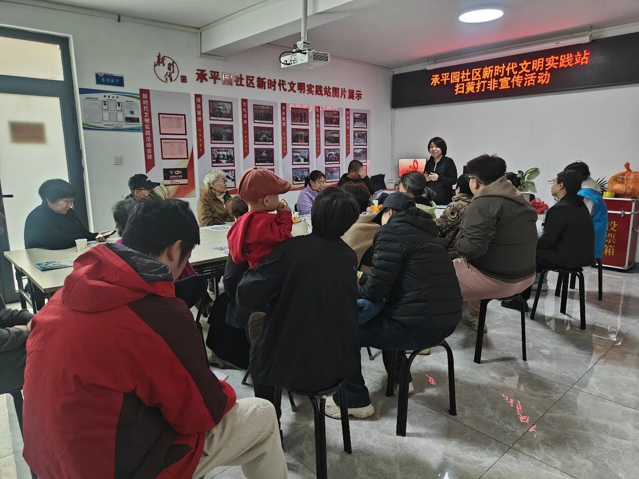 活动中,承平园社区工作人员细致讲解了“扫黄打非”工作的意义与目的,深入剖析涉黄涉非有害信息、非法出版物对家庭及青少年的危害。活动现场,工作人员组织大家集中观看“扫黄打非”科普宣传视频,帮助居民直观加深认知、强化记忆。
