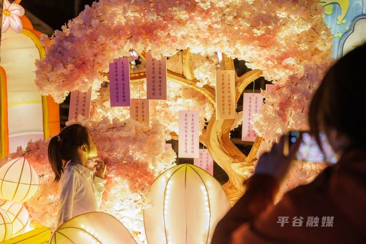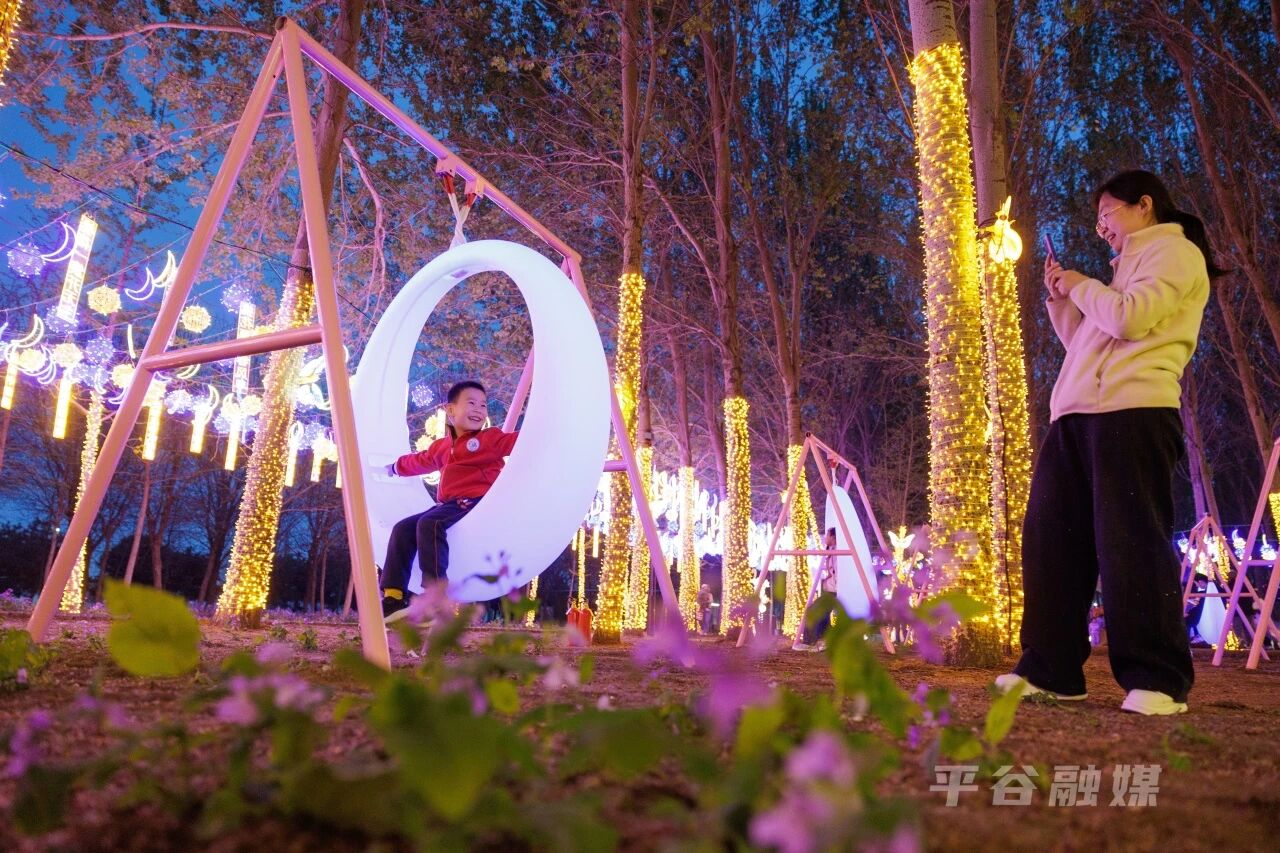 夜幕降临,桃源里欢乐田园“桃花源记”主题光影艺术景观璀璨点亮,正式开启春日夜间休闲新体验。景观充分盘活林下空间,打造桃源桃树、桃源仙子、仙桃舞台等系列主题灯组,生动还原《桃花源记》中“忽逢桃花林”“豁然开朗”“怡然自乐”等经典场景,为游客营造一步一景皆诗意的夜游秘境。