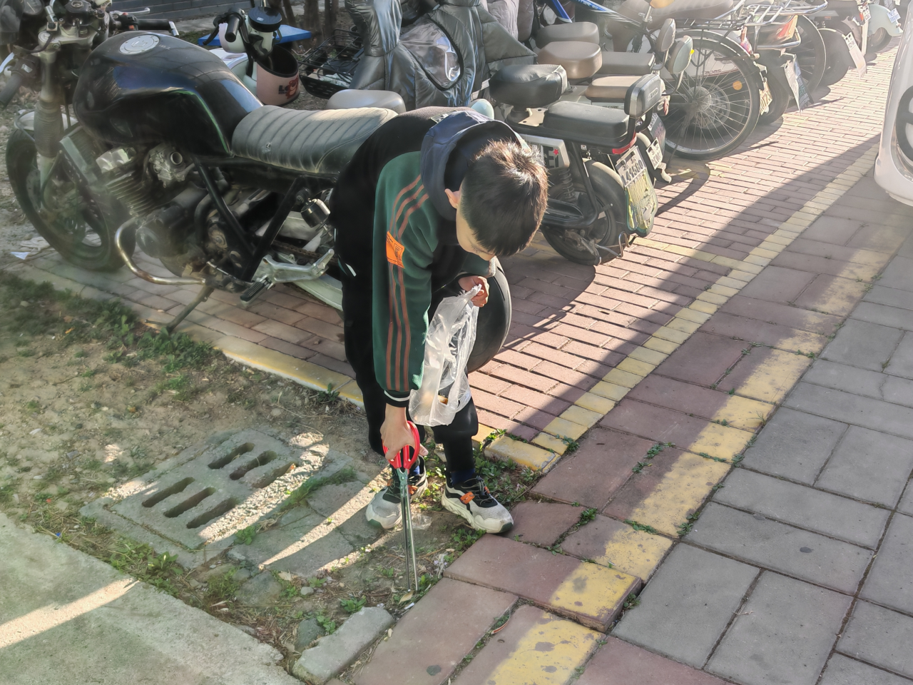 活动中,辖区小志愿者们化身环保小卫士,个个精神饱满、干劲十足。大家戴上手套,手持筷子、垃圾夹等工具,穿梭在社区的绿化带、人行道、花坛边缘等各个角落。面对草丛缝隙、地砖夹缝等卫生死角里的烟头,小志愿者们不放过任何一处细节,耐心细致地搜寻、捡拾,将一个个烟头仔细收纳进提前准备好的垃圾袋中。