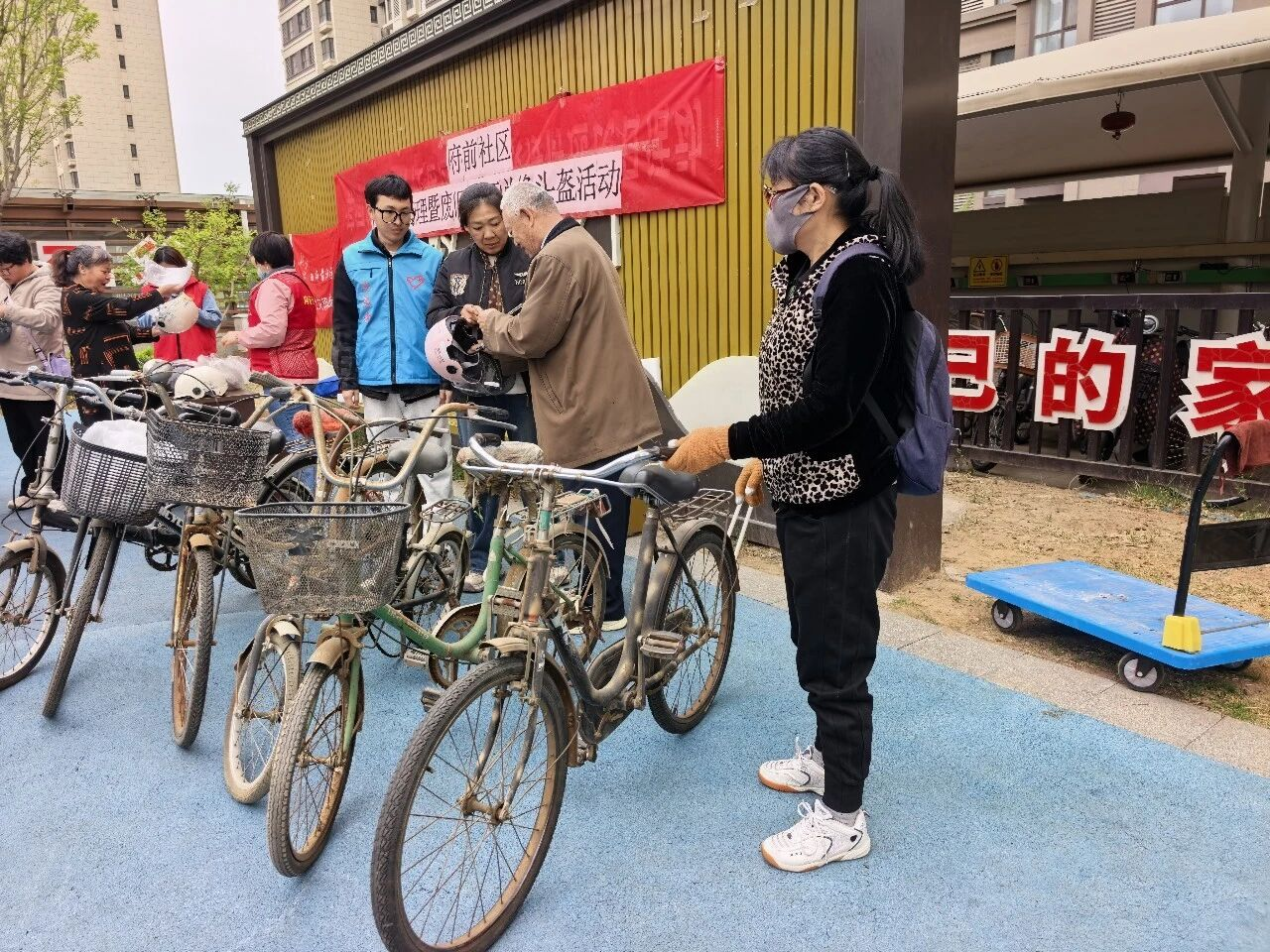 社区内长期堆放的废弃自行车、电动车、三轮车等“僵尸车”占用公共空间、堵塞消防通道,存在安全隐患。活动前期,社区通过入户走访、张贴通知、业主群宣传等方式,普及僵尸车危害及活动流程,动员居民主动参与。活动现场,居民用闲置废弃车辆登记核实后,可免费领取安全头盔。工作人员同步讲解骑行安全知识,普及交通法规,引导文明出行。