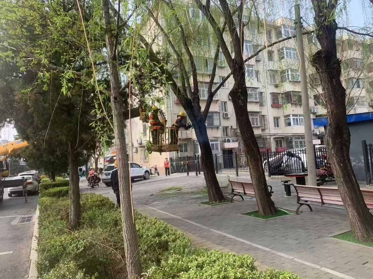 雨季将至,为切实消除辖区安全隐患,保障居民出行及人身财产安全,金海社区针对金海小区1号楼东房山外(新平西路)8棵大柳树长期无人管理、树枝过度繁茂的问题,社区主动作为、快速处置,积极对接区园林绿化局开展专业树木修剪作业,利用半天的时间对树枝进行全面修剪,彻底消除树木潜在安全隐患,保障居民出行安全,以实际行动解决居民身边的烦心事。