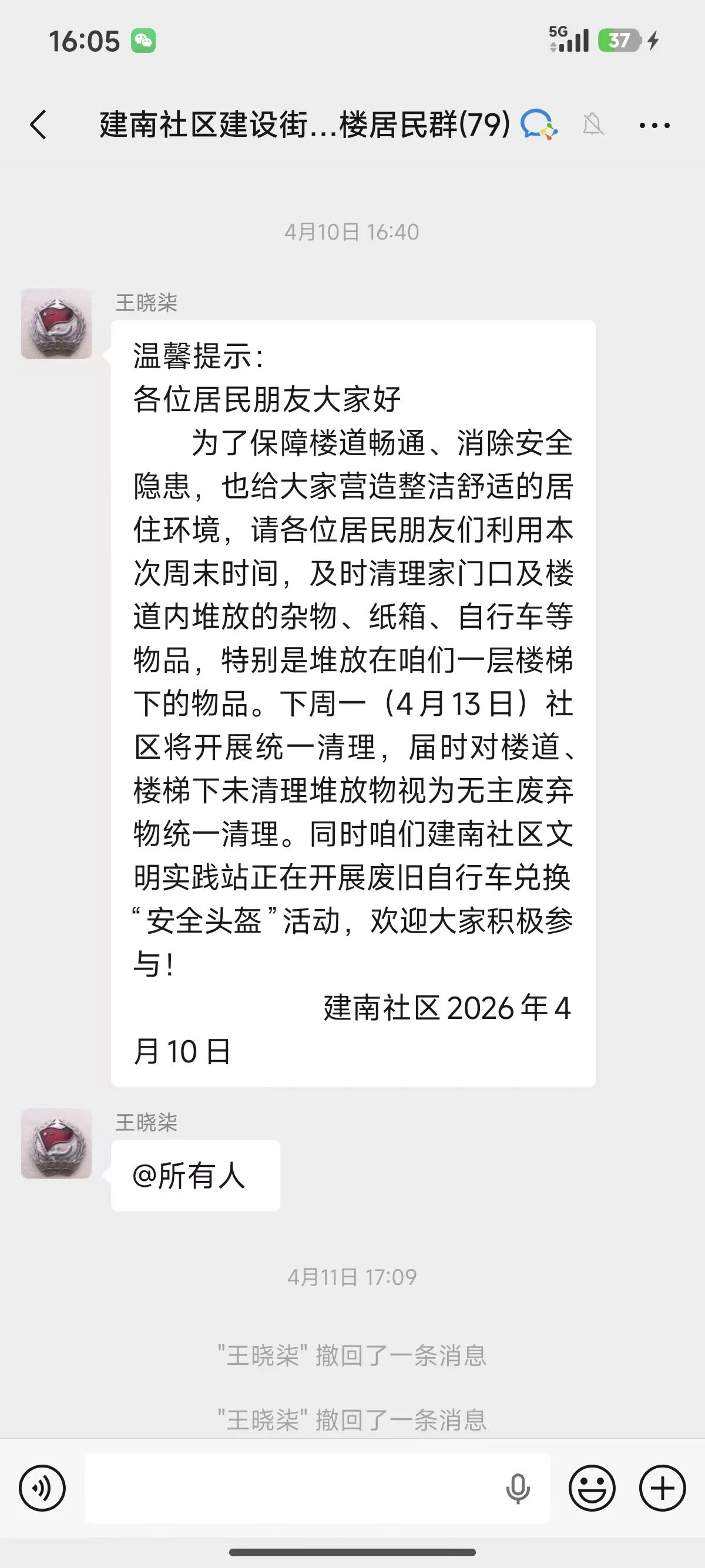 行动开展前,社区提前通过居民微信群、单元楼公告栏等渠道发布清理通知,明确清理范围、时间及相关要求,引导居民自行清理楼道内私人物品,将有用物品妥善收纳,无用杂物主动清运。清理过程中,工作人员对楼道等公共区域逐一排查,对逾期未清理的旧家具、纸箱、闲置杂物等无主废弃物进行集中清运;同时对空调外机周边、单元门口、背街小巷等卫生死角的积存垃圾、杂草落叶进行彻底清扫。