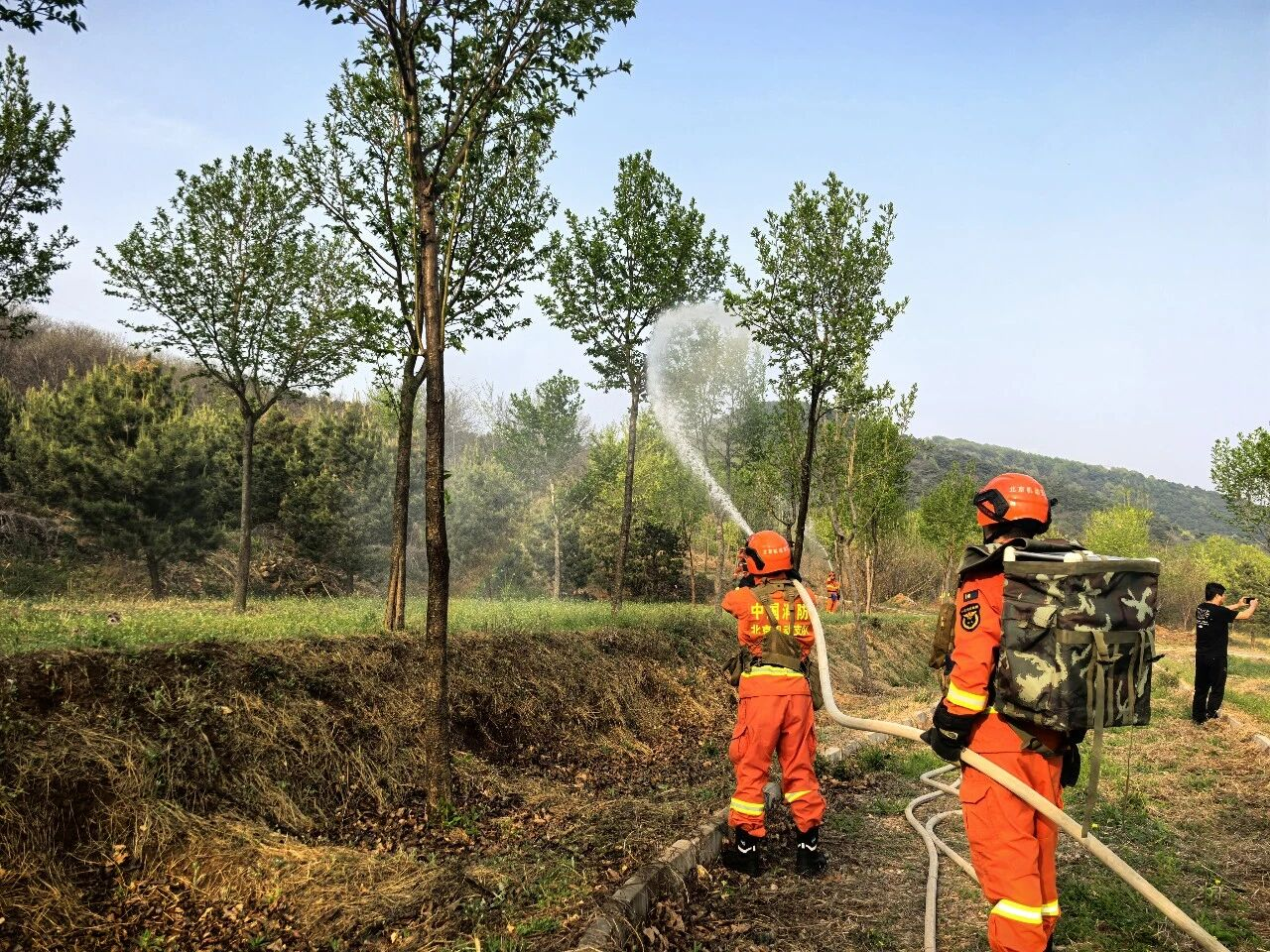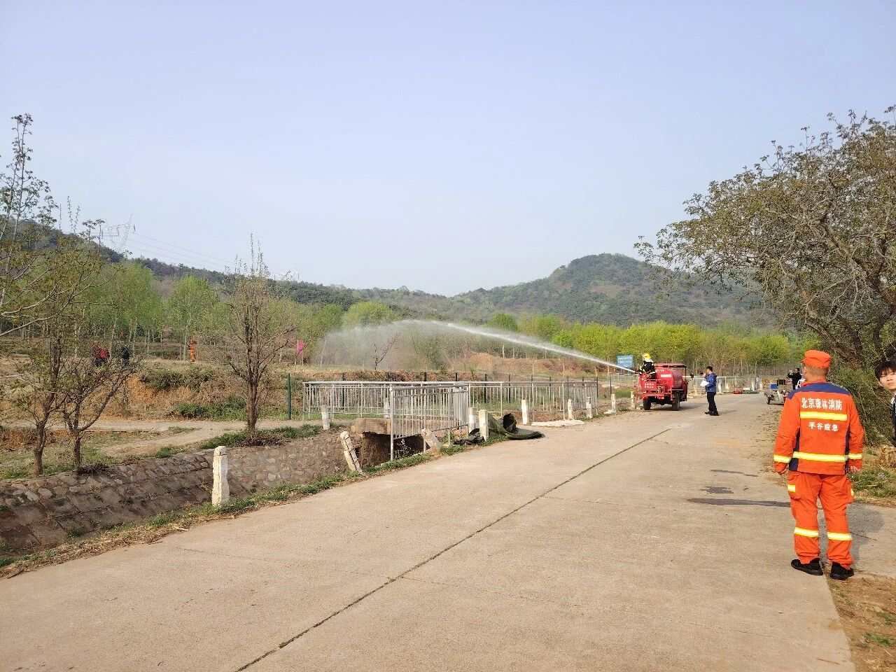 4月15日,平谷区森防办在王辛庄镇组织开展第14次“四不两直·红蓝对抗”森林火灾拉动演练。