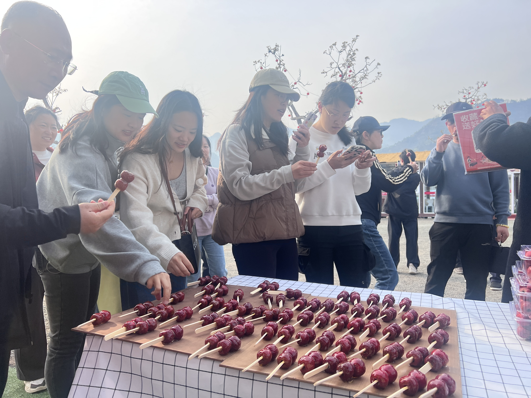 活动起点设在生态优美的梨花大道入口,途经东寺峪村委会小广场,往返约5公里。大家走在梨香漫径的小路上,一边健步如飞,一边畅聊工作与生活。随后,队伍前往湖畔耕读园,在碧波荡漾、田园如画的景致中沉浸式放松身心。