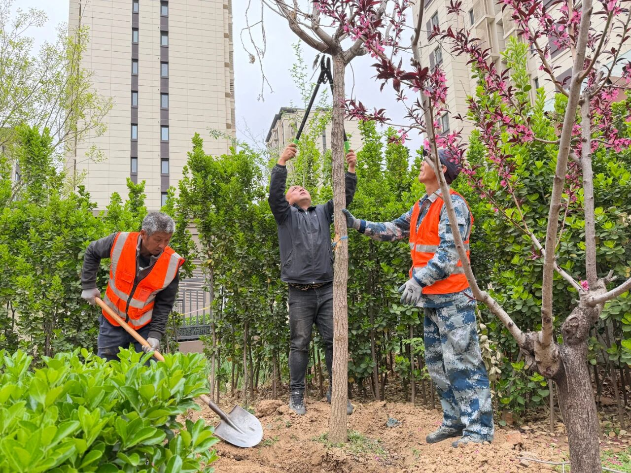 为美化人居环境、提升绿化品质,街道牵头,府前社区协同城承物业开展樾府小区植树增绿行动。前期社区对接街道确定苗木种类与栽植数量,联合物业实地勘察、科学规划点位,物业提前完成土地整理、挖树坑等准备工作。种植当天,社区与物业人员现场值守,规范秩序、保障安全与居民出行,施工人员规范修剪栽植,全程高效有序。此次行动以党建引领基层治理,凝聚街道、社区、物业三方合力,有效美化小区环境,提升了居民幸福感与满意度。