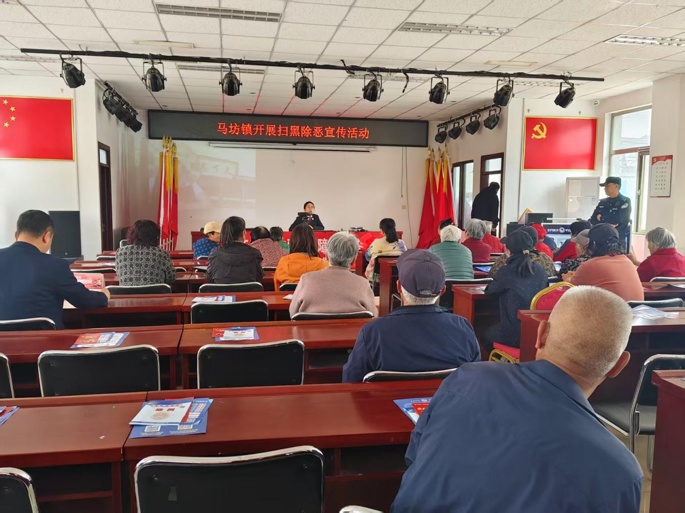 为深入推进常态化扫黑除恶斗争走深走实,切实提升农村群众知晓率与参与度,4月15日,马坊镇综治中心联合派出所、检察院,深入河奎村开展专项宣传活动,打通法治宣传“最后一公里”。