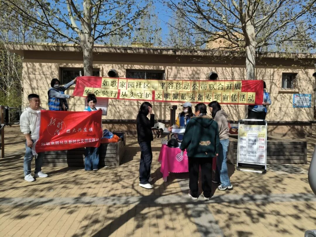 为进一步提升辖区居民电动自行车出行安全意识,有效降低骑行交通事故风险,筑牢社区交通安全防护防线,近日,如歌家园社区联合平谷移动公司及正规头盔生产厂家开展“安全骑行 从头守护”文明佩戴头盔公益宣传便民服务活动。