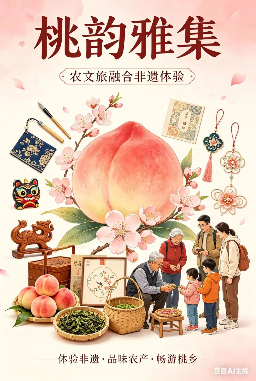 本次活动以桃花为景、非遗为魂、产业为基,聚焦乡村文化振兴与特色产业融合,精心筹备国风文艺展演、沉浸式非遗体验等多元环节,诚邀广大游客、各界嘉宾亲临现场,共赏桃花盛景,共品非遗魅力,共探乡村经济发展新路径。