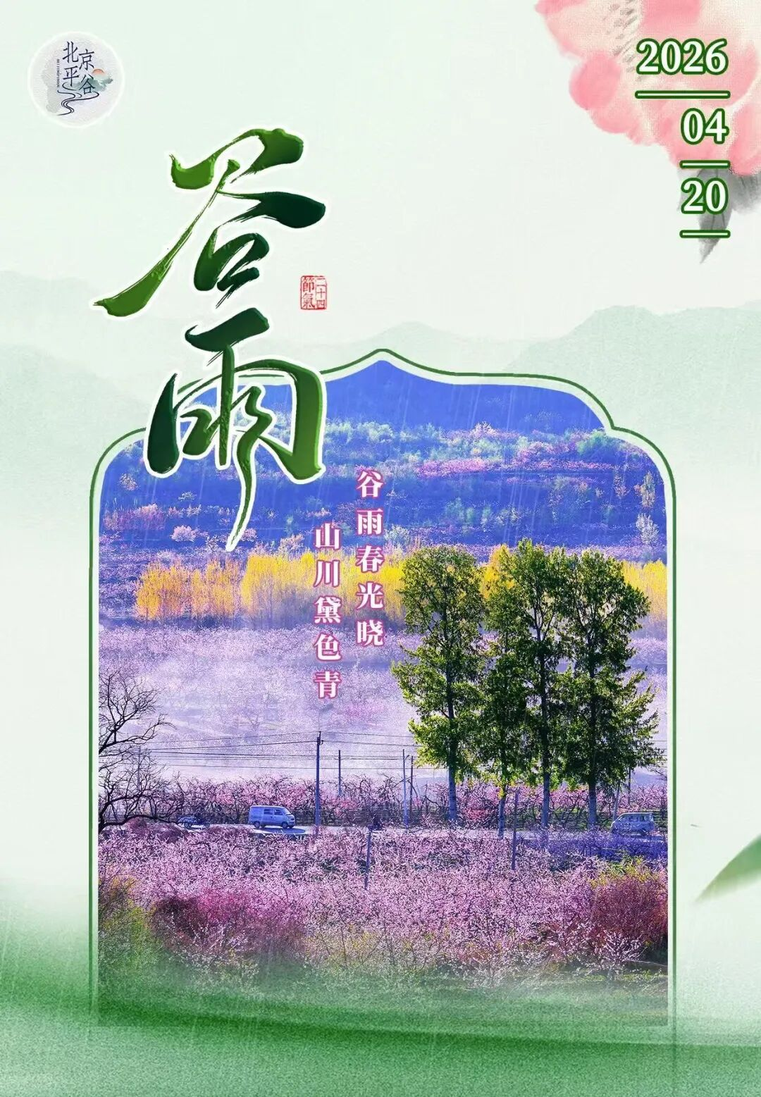 今日谷雨,春之落幕,夏之序章。当太阳抵达黄经30°,春雨润田、百谷萌生,牡丹吐艳、楝花送春,一幅温润暮春画卷徐徐铺展。在平谷,这场春日收尾之约,既有节气诗意,更有香椿飘香、农文旅相融、文明新风荡漾的动人图景。