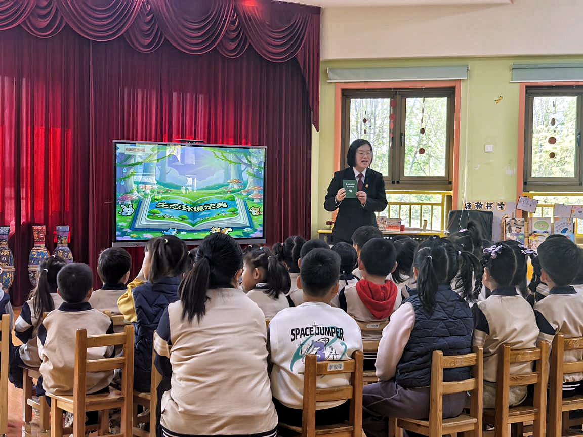 此次活动中,各部门协同发力、各司其职:区园林绿化局组织活动统筹与科普宣传;区森林公安支队现场展示罚没的拍笼、弓弩等非法猎捕工具,结合实物,向孩子们讲解严禁猎捕、买卖野生鸟类,坚决抵制弹弓打鸟等违法行为;金海湖生态法庭通过PPT宣讲的方式,普及《中华人民共和国生态环境法典》中与野生动物保护相关的法律知识,引导孩子们树立爱鸟护鸟、守护生态环境的法治意识与责任观念。
