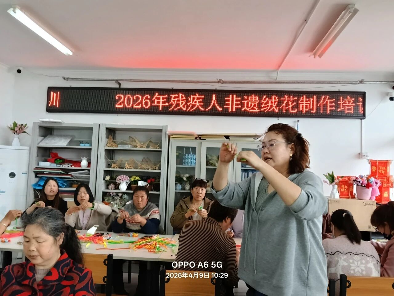 非物质文化遗产是流淌在岁月里的文化瑰宝,而温暖的陪伴与精准的帮扶,则能让这份瑰宝在特殊群体手中绽放新的光彩。为进一步丰富镇域残疾人朋友的精神文化生活,赓续中华优秀传统文化根脉,近日,南独乐河镇残联联合南独乐河镇新时代文明实践所和平谷区旭日职业技能培训学校,开展残疾人非遗绒花制作活动,31名残疾人参加。