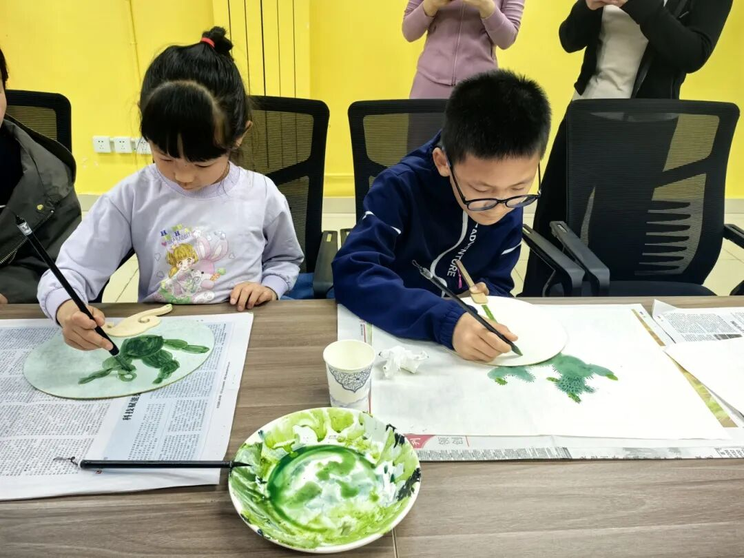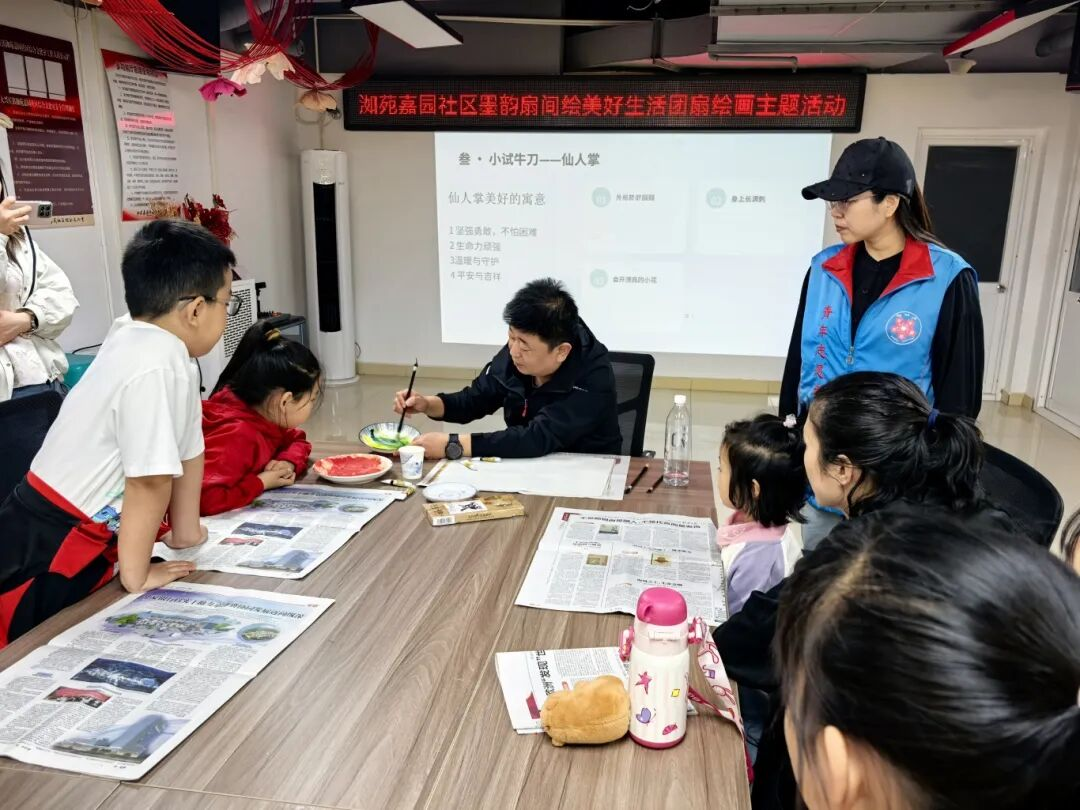 活动现场,工作人员提前备好空白团扇、水彩颜料、绘画画笔等活动物料,特邀专业绘画老师现场授课,细致讲解团扇历史渊源、绘画技巧与色彩搭配要点,通俗易懂的讲解让零基础的孩子们也能轻松上手。大家以扇为纸、以笔为媒,提笔落墨、静心创作,一笔一画勾勒美好色彩,笔墨之间寄托着对美好生活的热爱与期许。相互交流绘画心得、切磋创作技巧,欢声笑语不绝于耳,浓浓的邻里温情在笔墨流转间悄然蔓延。