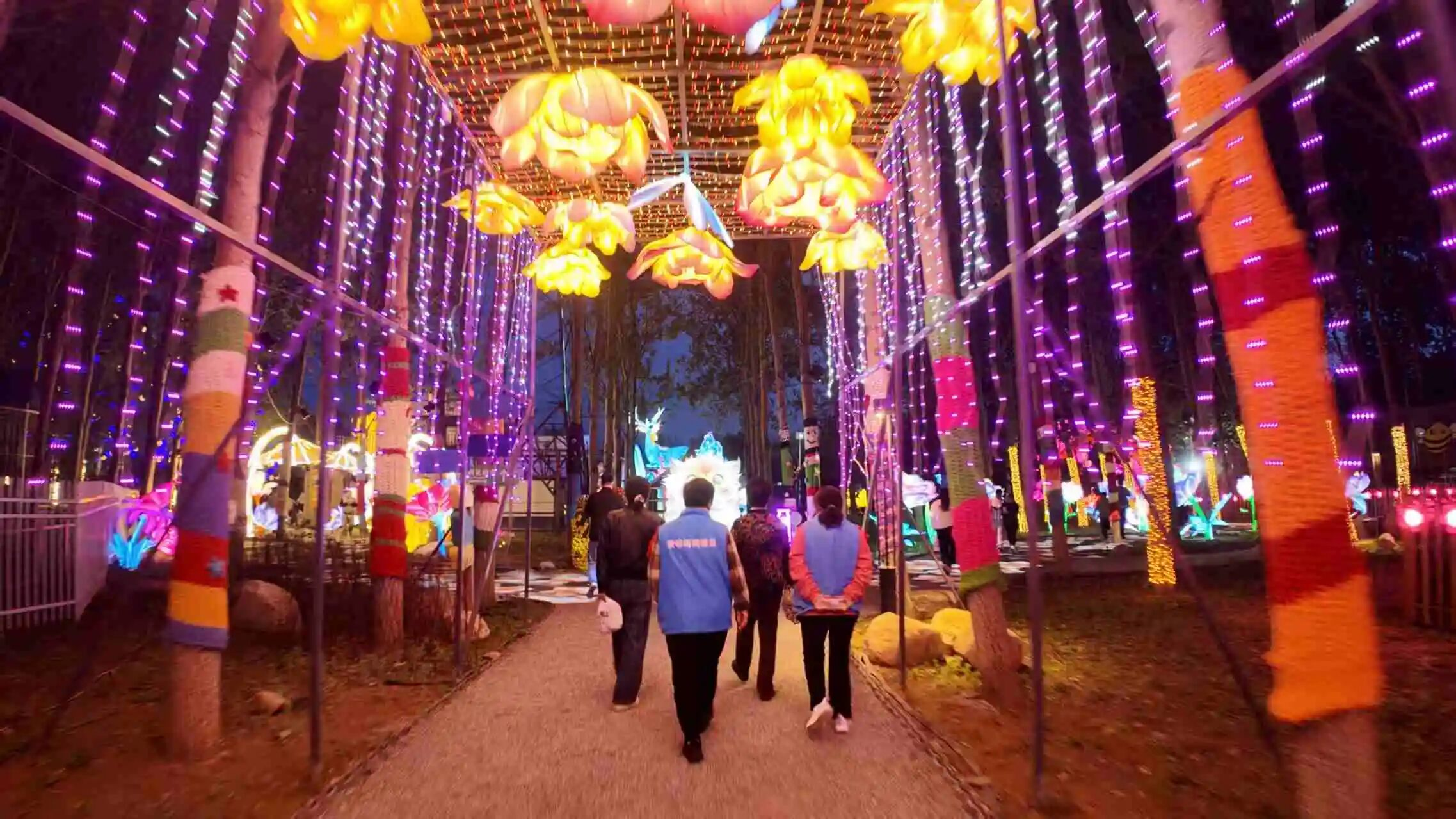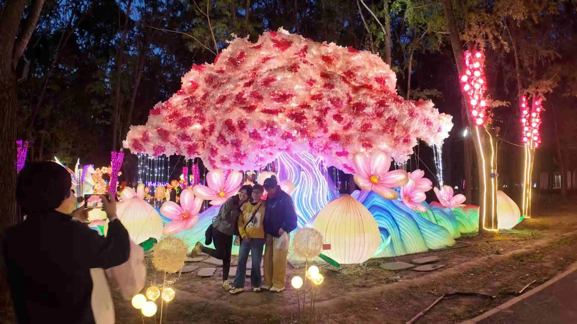 夜幕降临,园区内“桃花源记”主题光影灯组尽数点亮,桃花仙韵、林海流光、繁花秘境、国风神兽等各式彩灯错落交织,林间光影流转、灯影交织成画,将春日田园勾勒得诗意浪漫、如梦似幻。村民漫步于流光步道,沉浸式感受夜间文旅、光影夜游、田园夜经济的独特魅力,细细品鉴灯光场景打造、夜游氛围营造、沉浸式景观设计的巧思,学习夜间文旅消费场景打造的先进思路。