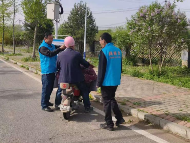 村两委干部与网格员在村内主干道值守,对过往骑行村民进行暖心劝导,结合典型交通案例,讲解不规范出行的安全风险,现场示范安全头盔正确佩戴方法。同时入户发放宣传资料,重点对老年人、接送学生家长等群体一对一科普,引导村民摒弃交通侥幸心理。