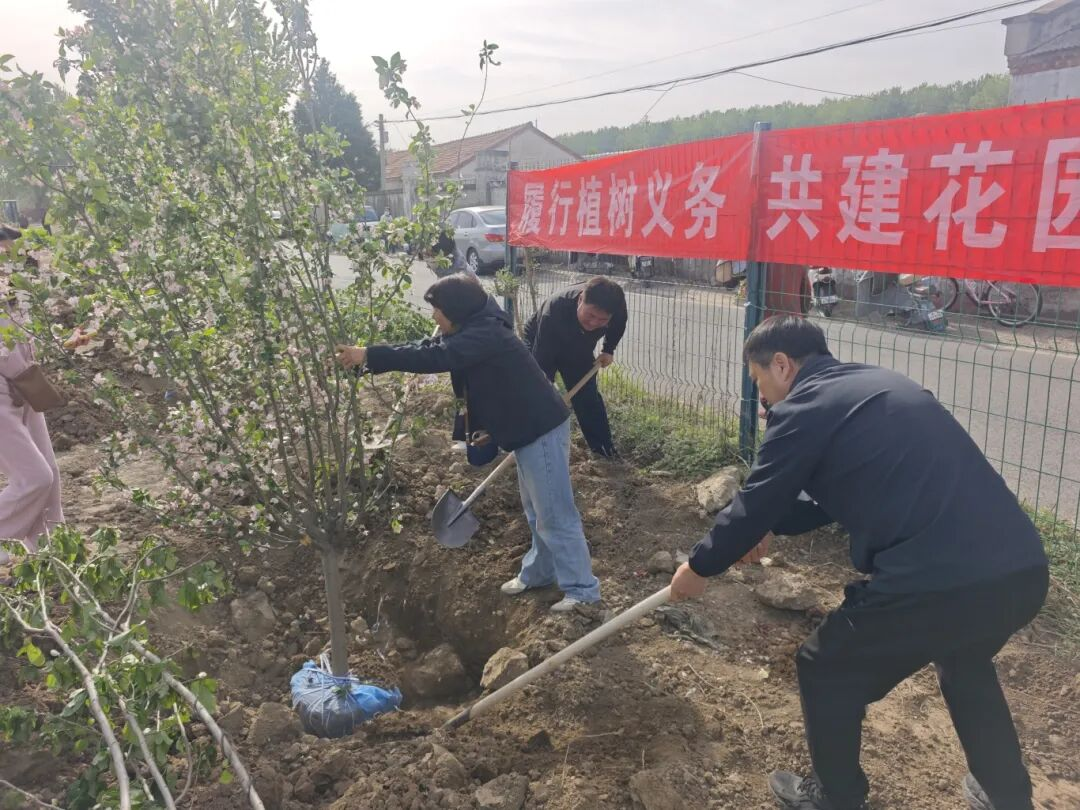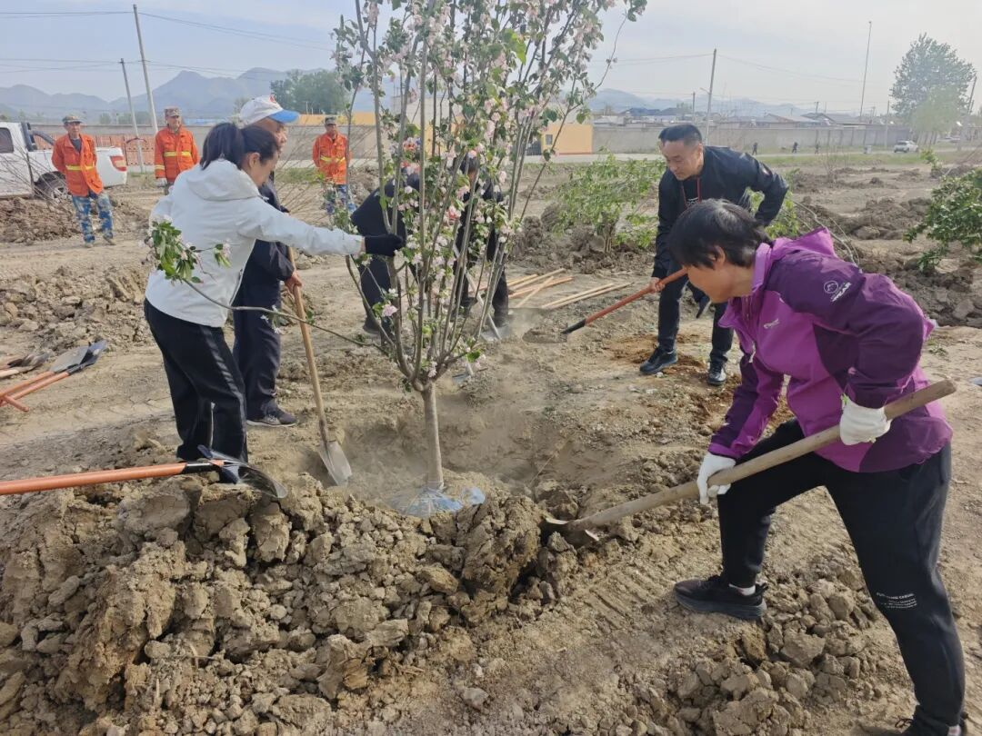 劳动过程中,全体干部职工不辞辛劳、全力以赴,用心栽植每一株幼苗,用情守护每一寸绿色。经过一番齐心协力的劳作,一棵棵新栽种的海棠树苗错落有致、迎风而立,在和煦的春光下展现出蓬勃生机,为初春的兴谷大地披上了清新绿装,勾勒出一幅充满希望的生态画卷。