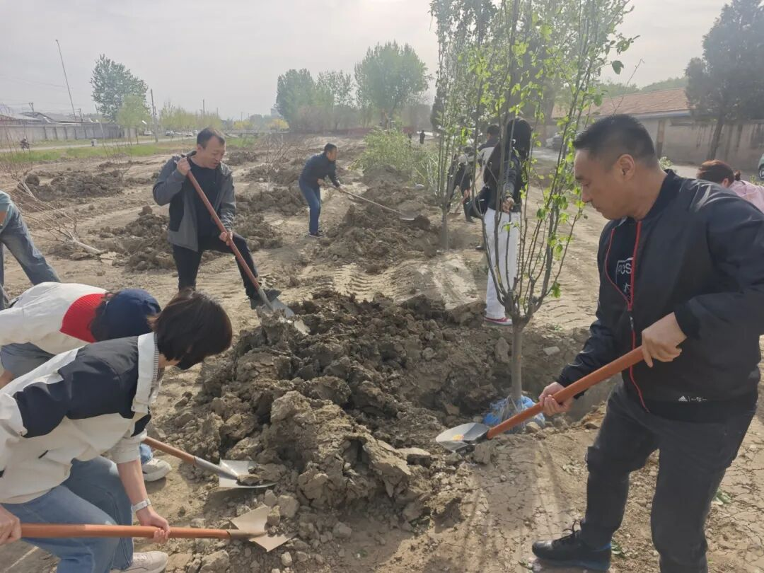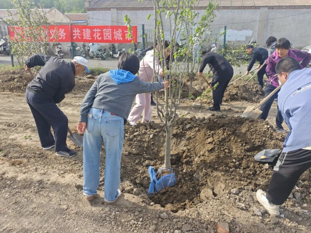 街道领导班子成员、机关各科室负责人、街道森林防火中队、后罗庄村“两委”干部、网格员等40余名干部职工齐聚植树现场,共同挥锹栽苗、浇灌新绿,掀起春季植树绿化热潮。