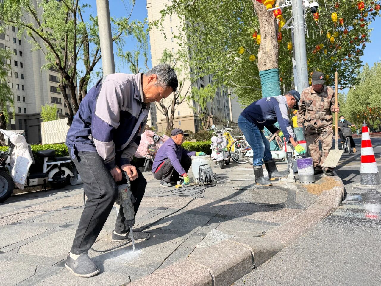 此前,部分居民图方便将电动车、自行车骑上并停放在人行道,挤占行人空间、存在安全隐患且影响市容。社区以创城为抓手,经现场踏勘、征求居民意见后,确定在重点路口人行道边缘安装隔离桩,施工中工作人员规范操作,确保隔离桩稳固,阻止非机动车驶入人行道。