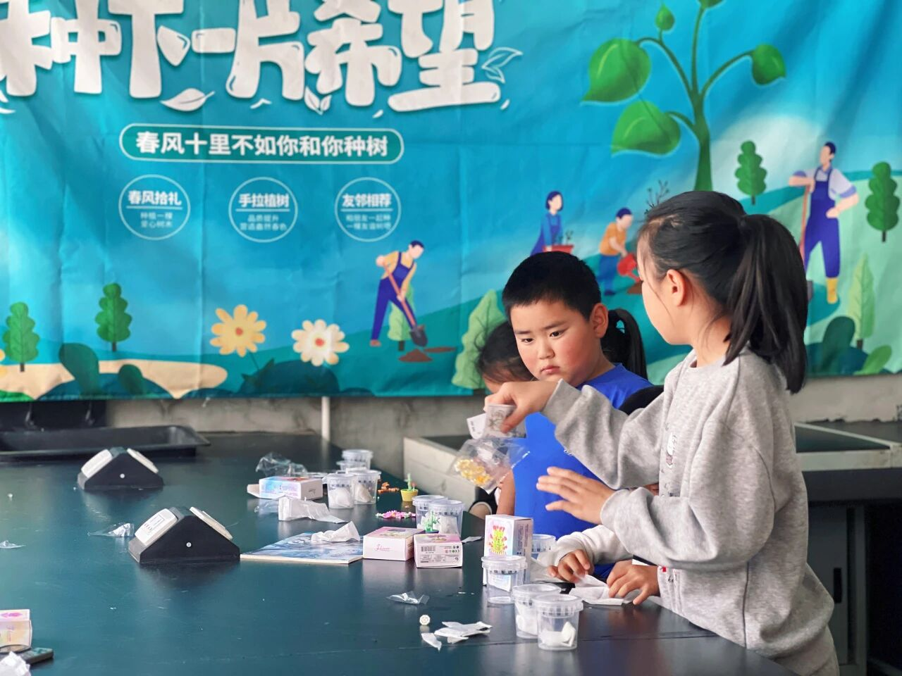种子发芽活动结束后,镇团委还为孩子们贴心准备了植树主题的积木,以拼搭的形式延续绿色主题。孩子们动手组装小树积木,在趣味拼搭中加深了爱护植物、保护环境的意识,实现了自然教育与动手乐趣的完美结合。