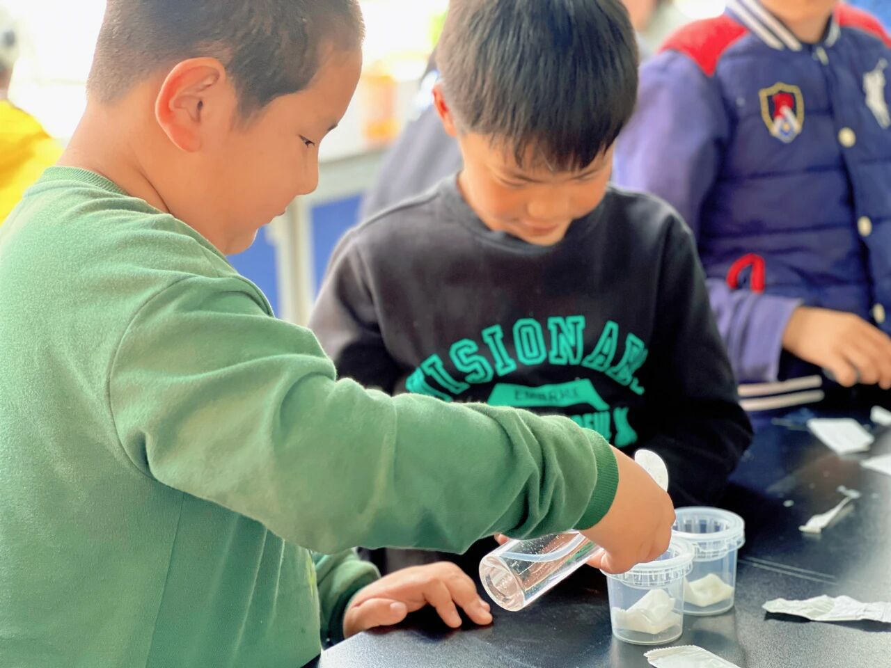 在动手实验环节,孩子们在工作人员和高教授的指导下,有序完成铺纱布、摆放种子等操作,严格遵守“湿润不积水”的养护要点,将实验杯放置在阴凉通风处,并开启为期7天的观察记录。大家每天定时浇水、细心观察,用文字和图画等方式记录种子的点滴变化。