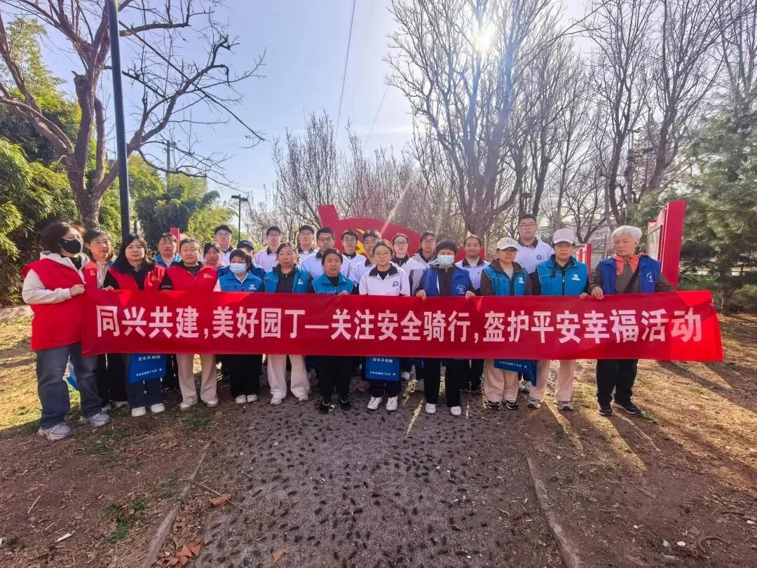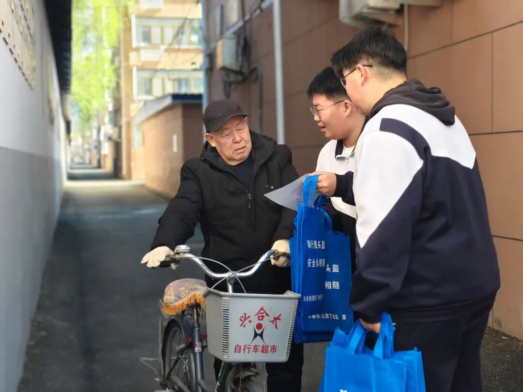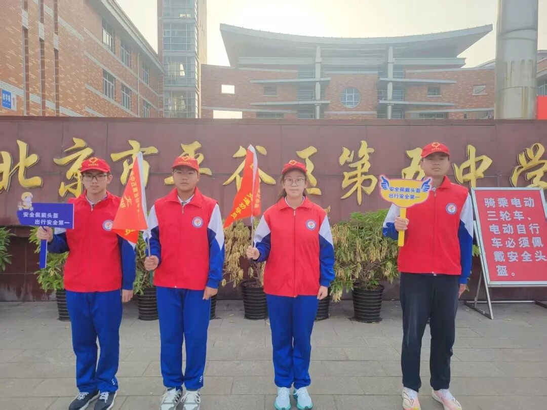 他们是平谷五中“安全守护小卫士”志愿服务队的一员。近日,平谷区第五中学安保处、团委联合园丁社区居委会,共同开展“同兴共建,美好园丁——关注安全骑行,盔护平安幸福”主题活动,以校社协同、多方联动的务实举措,为青少年交通安全筑牢坚实屏障,守护学生平安出行路。