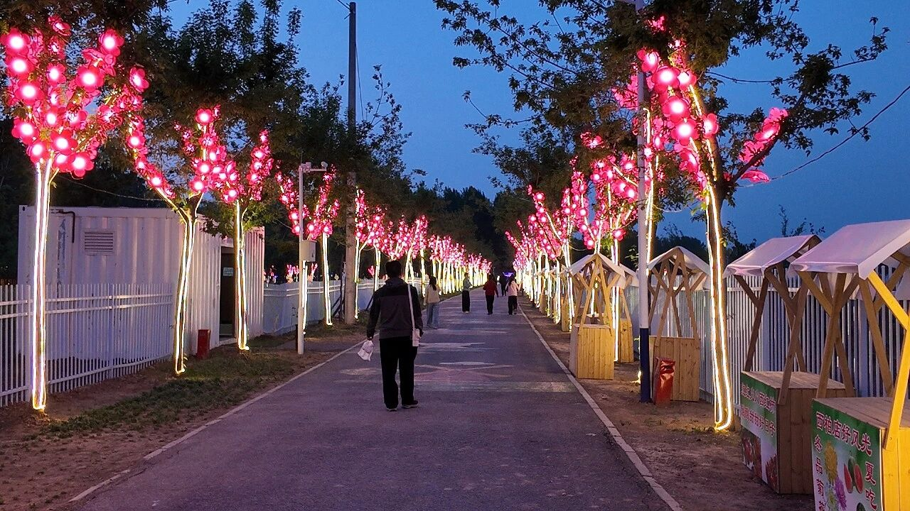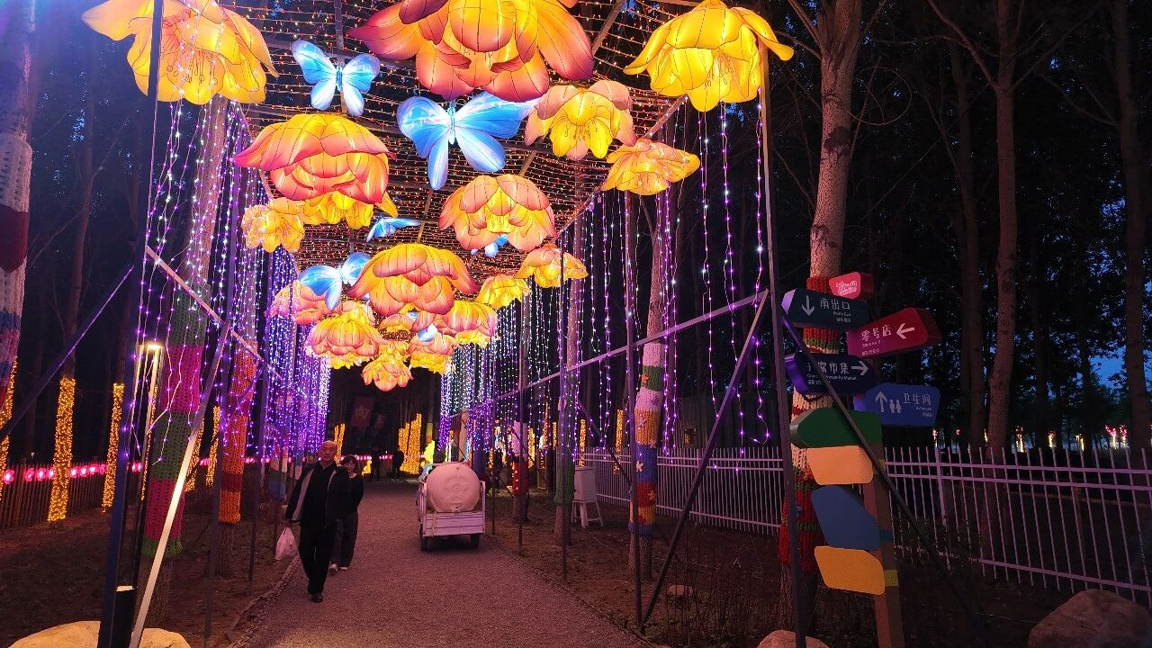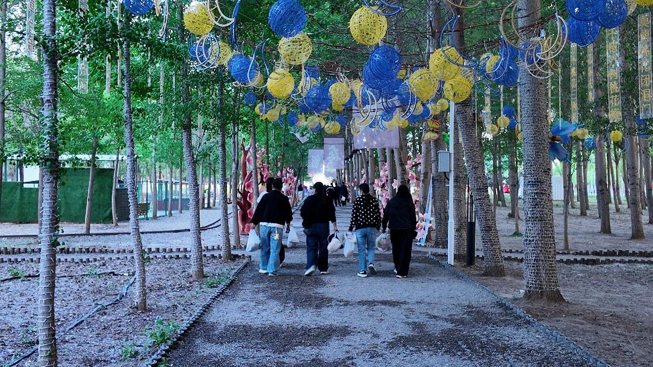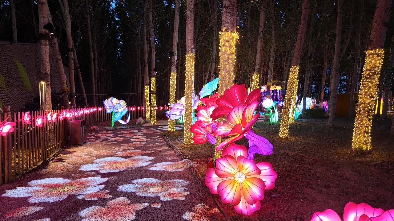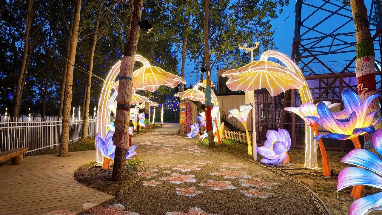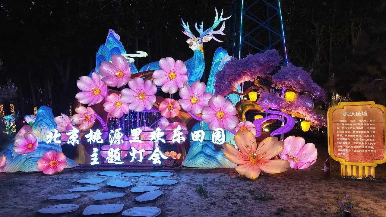 傍晚时段,参观团队步入桃源里·欢乐田园,体验以“桃花源记”为主题的光影夜游项目。园区依托自然林地,结合灯光艺术与景观设计,营造出沉浸式的春日夜间场景。干部们沿规划步道有序参观,在光影交错中感受生态环境与人文创意的融合。