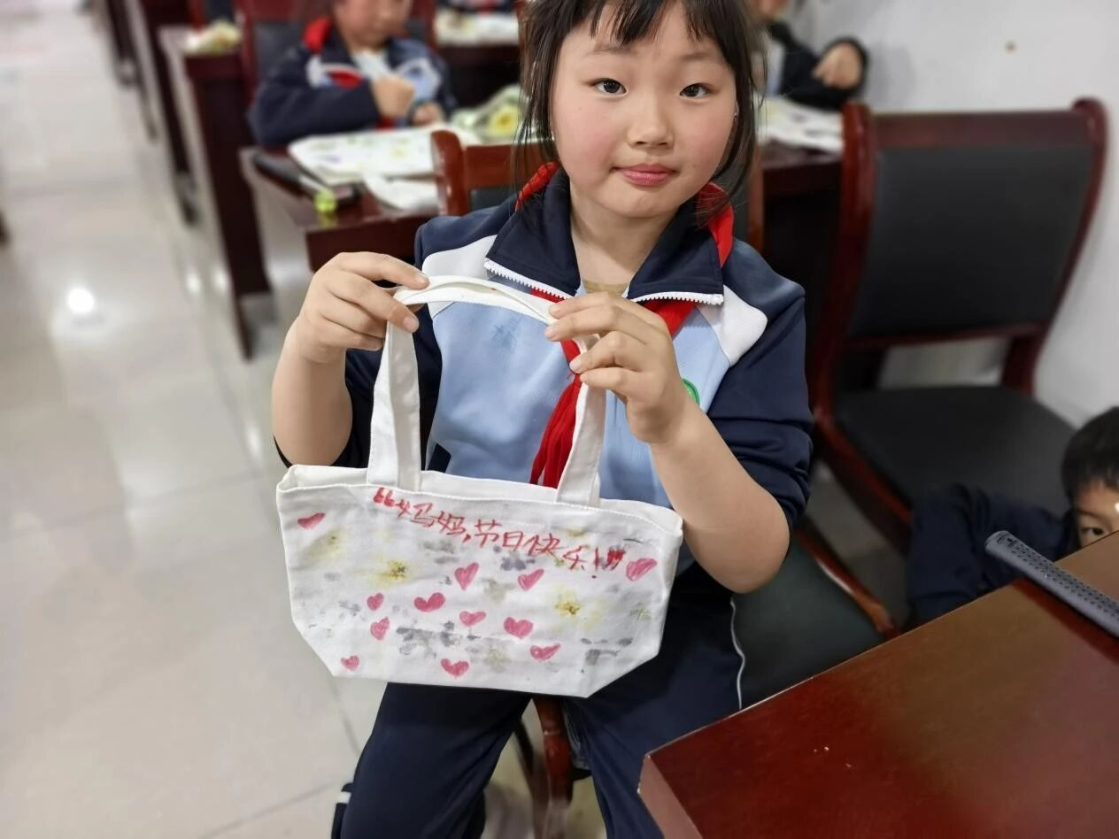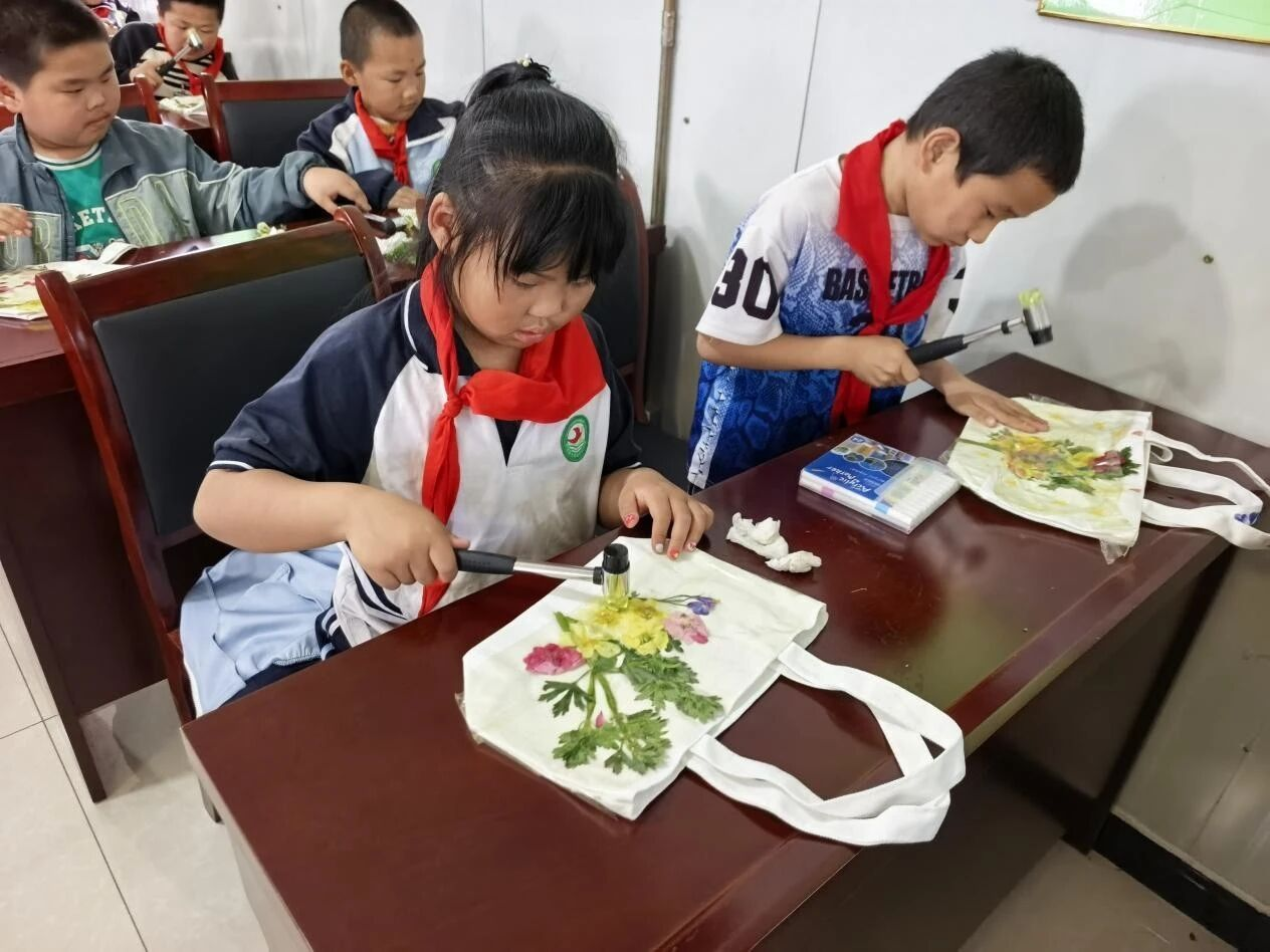 活动现场,大华山大桃科技小院硕士研究生温俊仁围绕桃花生长特性、立夏节气物候特点及母亲节文化内涵开展科普讲解,细致演示压花、摆位、拓印、定型全流程操作技巧,手把手指导学生正确使用工具、规范创作。在耐心引导下,孩子们以桃花、二月兰、树叶等为素材,认真创作、大胆想象,将春日美景定格成一幅幅生动的拓印作品,在动手实践中提升审美情趣与劳动技能。