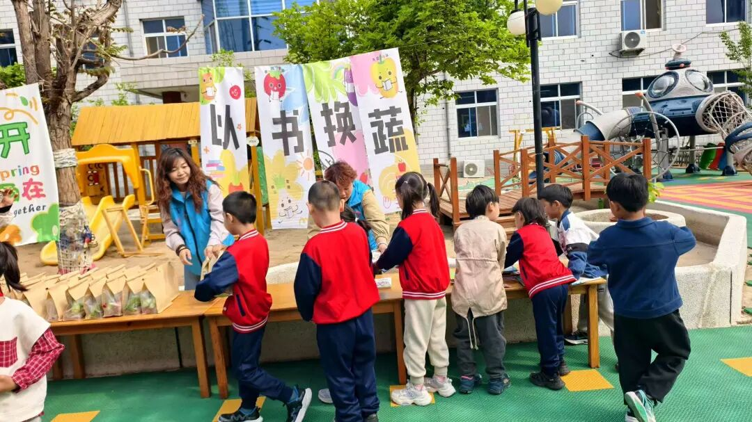 在书香与蔬香中,60名幼儿聚在一起,不仅仅是一次图书置换活动,更是一次以书为友的聚会。让孩子们明白换到的不仅是蔬菜,更是一个可以反复咀嚼的故事;读过的书像这些蔬菜一样有营养有力量。他们递出的每一本旧书,后续经过整理后都将流转至社区图书角,让知识接力传递,让孩子在实践中真切理解了资源共享与循环利用的意义,也让更多孩子能在阅读中收获快乐。