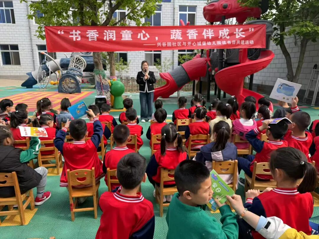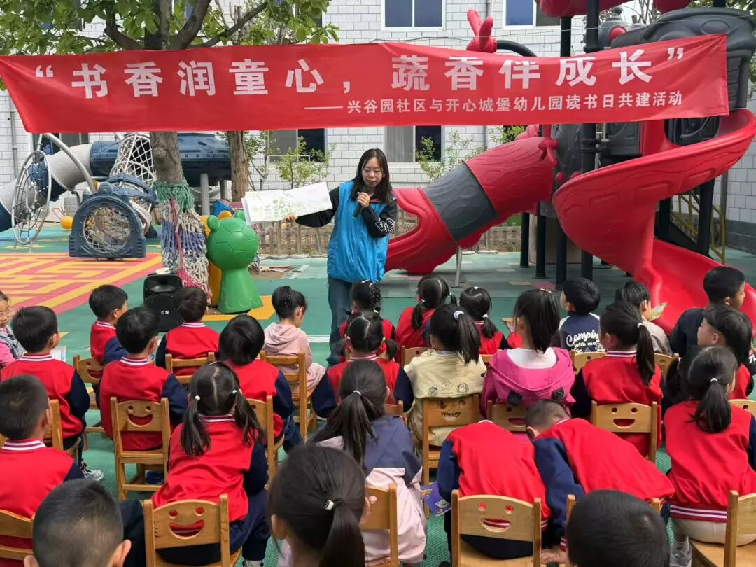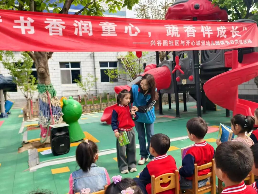 春和景明,书香致远。为迎接第31个“世界读书日”到来,让知识的种子在童年里生根发芽,推动全民阅读向幼龄段延伸,营造“爱读书、读好书、善读书”的读书氛围,4月23日上午,兴谷园社区联合开心城堡幼儿园开展“书香润童心,蔬香伴成长”世界读书日共建活动,70余名师生共启春日阅读之旅。