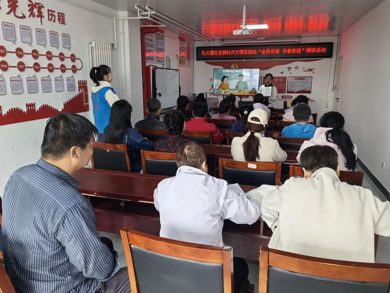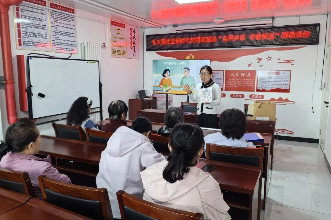 为迎接世界读书日,践行全民阅读理念,普及科学饮食养生知识,礼义园社区开展“全民共读 书香致远”阅读活动,邀请行知书店专业老师走进社区,引导居民掌握科学饮食知识,搭建邻里互动交流平台。