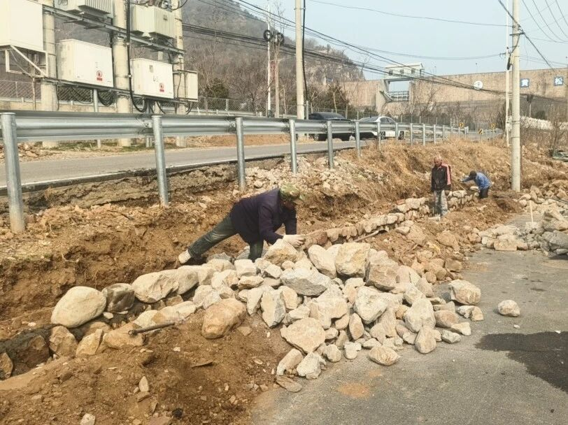 整治过程中,黄松峪村组织力量对区域内乱堆乱放的物料、废弃杂物进行全面清理规整,平整硬化场地,修建石砌护坡,同步对周边道路实施优化改造,加固护栏、完善防护设施,解决了车辆通行困难问题,消除了安全隐患。如今,村口环境清爽整洁,道路通行安全顺畅,北门户面貌焕然一新,得到了村民的一致好评。
