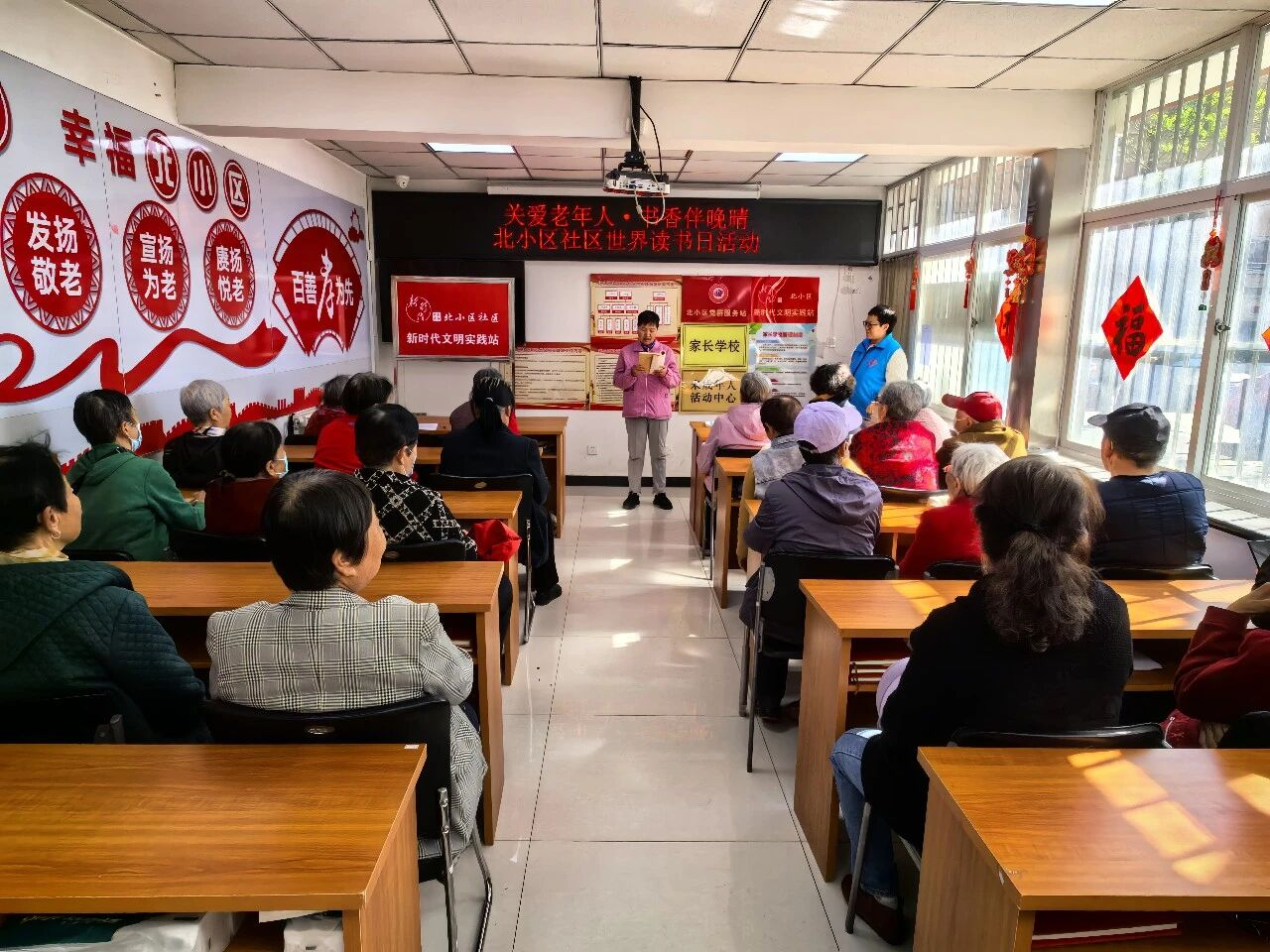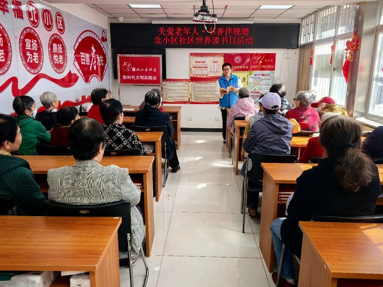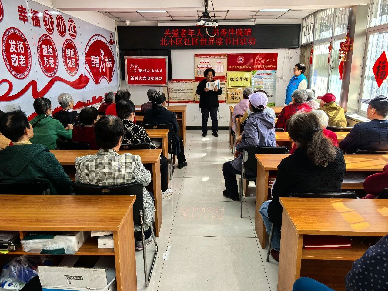 世界读书日到来之际,北小区社区开展关爱老年人主题阅读活动,50余名社区老年居民参与其中。