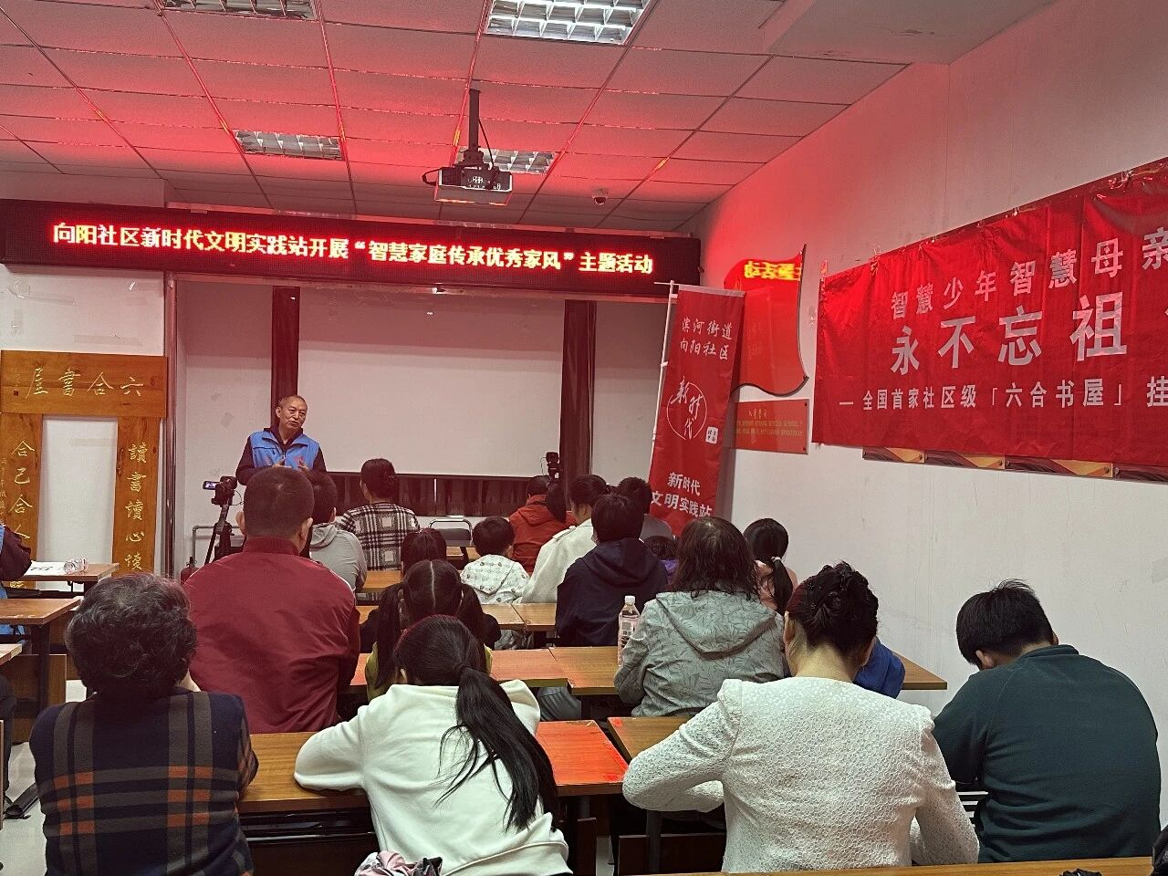 向阳社区联合“六合书屋”开展“智慧家庭传承优秀家风”主题活动,邀请辖区家庭参与,以书香涵养家风、以家风带动社风。