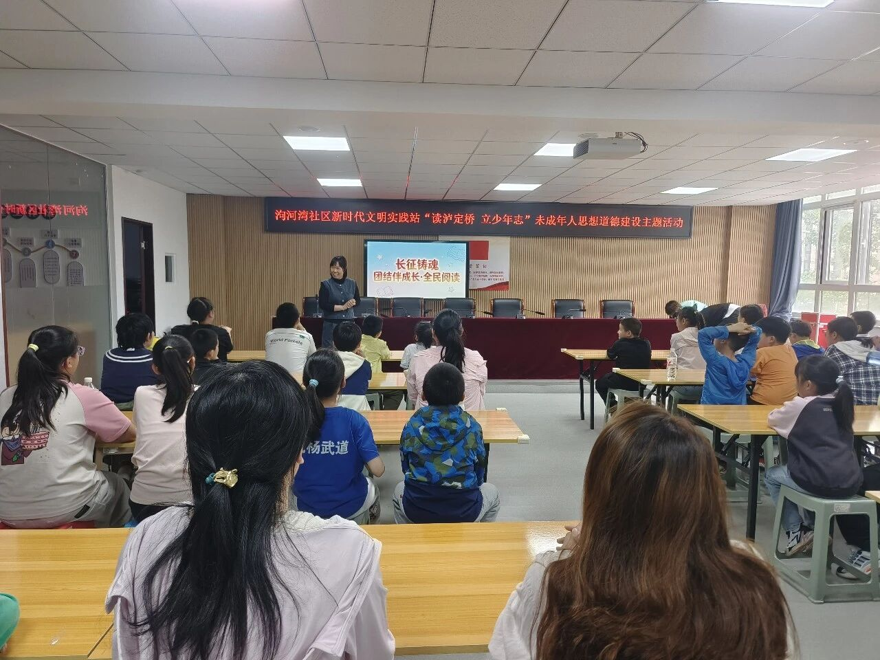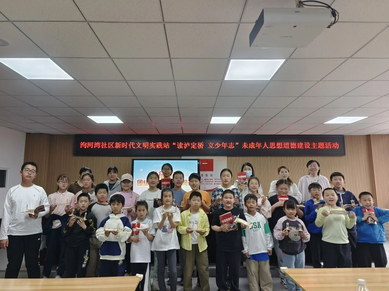 泃河湾社区联合平谷共青团创能π社区青年汇,紧扣全民阅读及长征胜利90周年主题,举办了“读泸定桥 立少年志”未成年人思想道德建设主题活动。让青少年在沉浸式阅读与手工实践中感悟长征精神,立下强国之志。